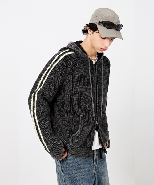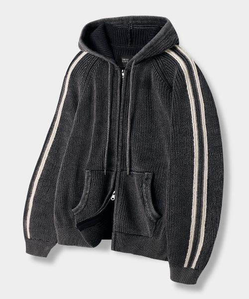 피그먼트 트랙 니트 후드 집업_피그먼트 차콜