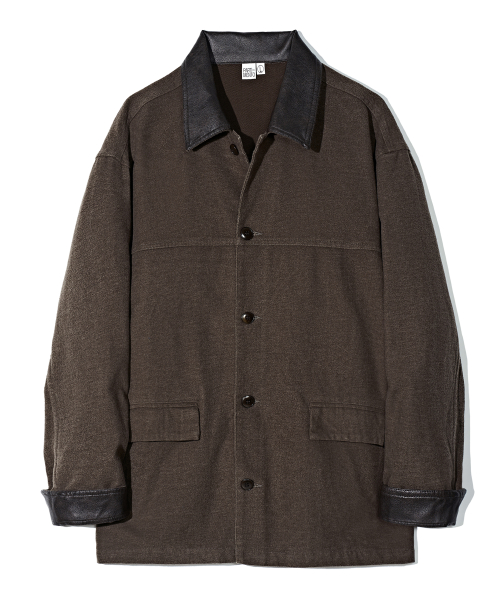 카라에는 레더 배색 디테일을 더해 단조롭지 않은 포인트를 주었고, 클래식한 카 코트 디자인으로 부담 없이 다양한 스타일링에 활용하기 좋습니다.