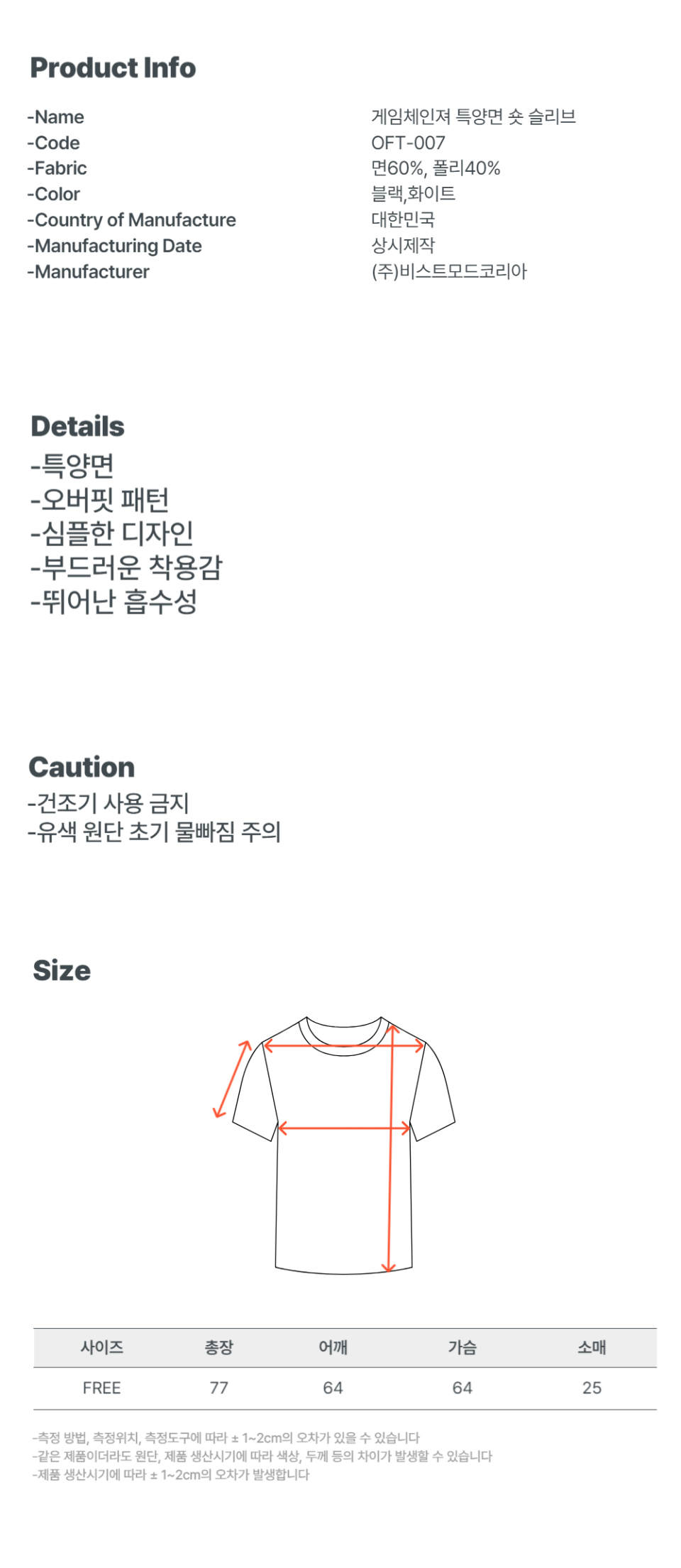 게임체인져 특양면 오버핏 반팔 티셔츠 숏 슬리브