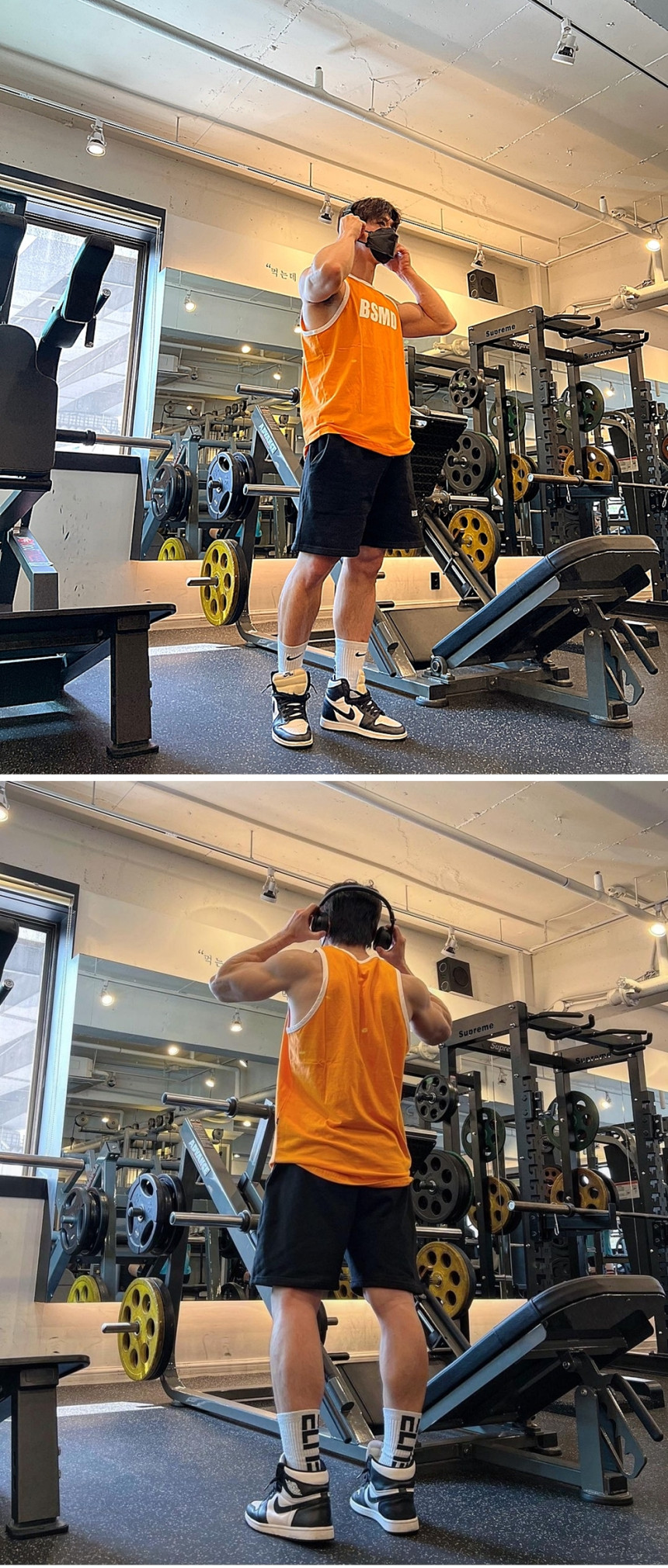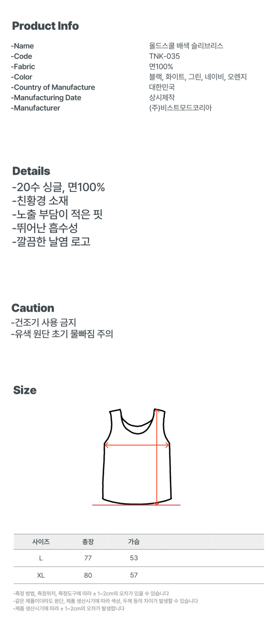 175cm / 80~85kg [오렌지 XL사이즈 착용]