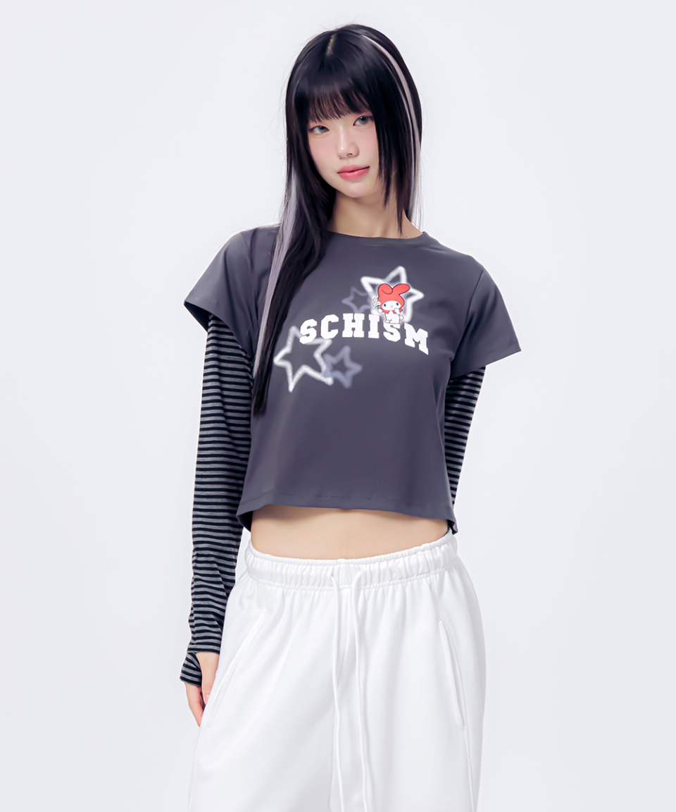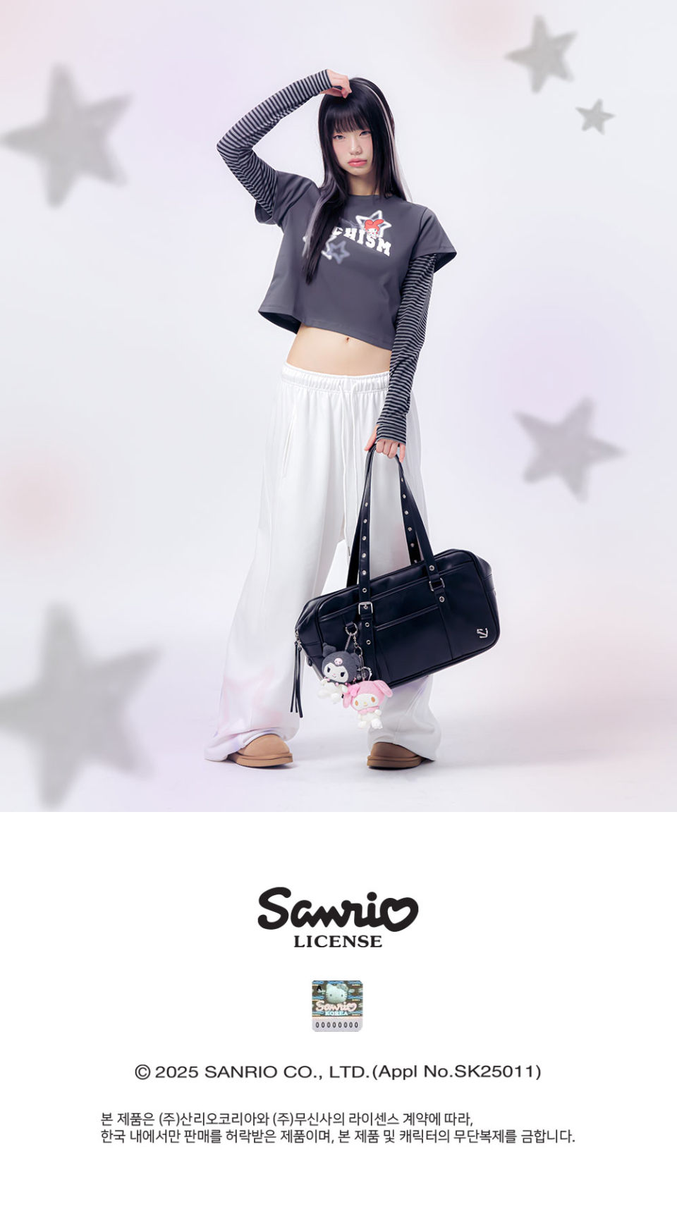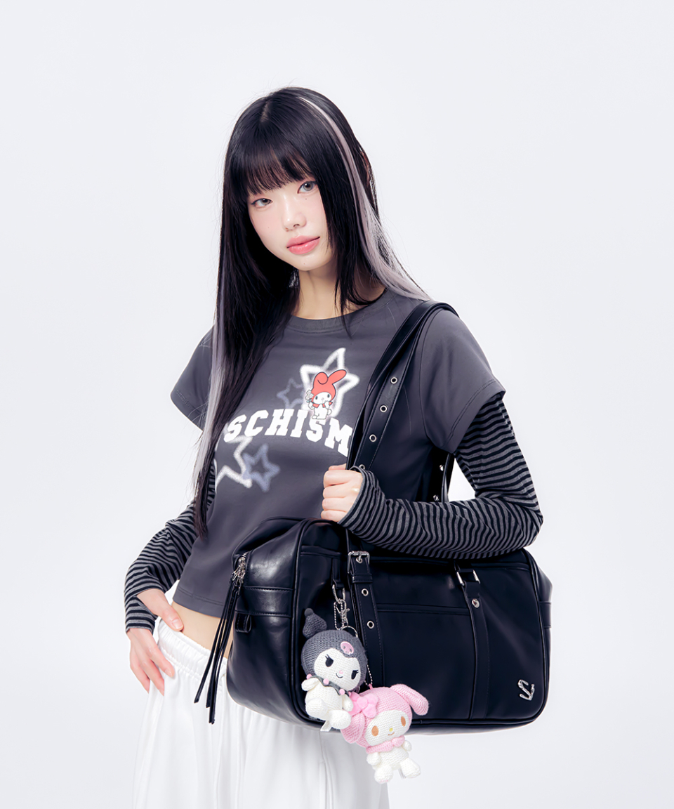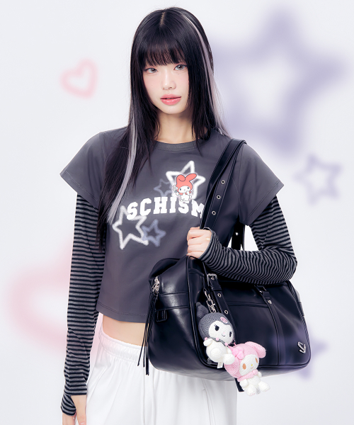 SANRIO CHARACTERS TAGGING LS TEE CHARCOAL
