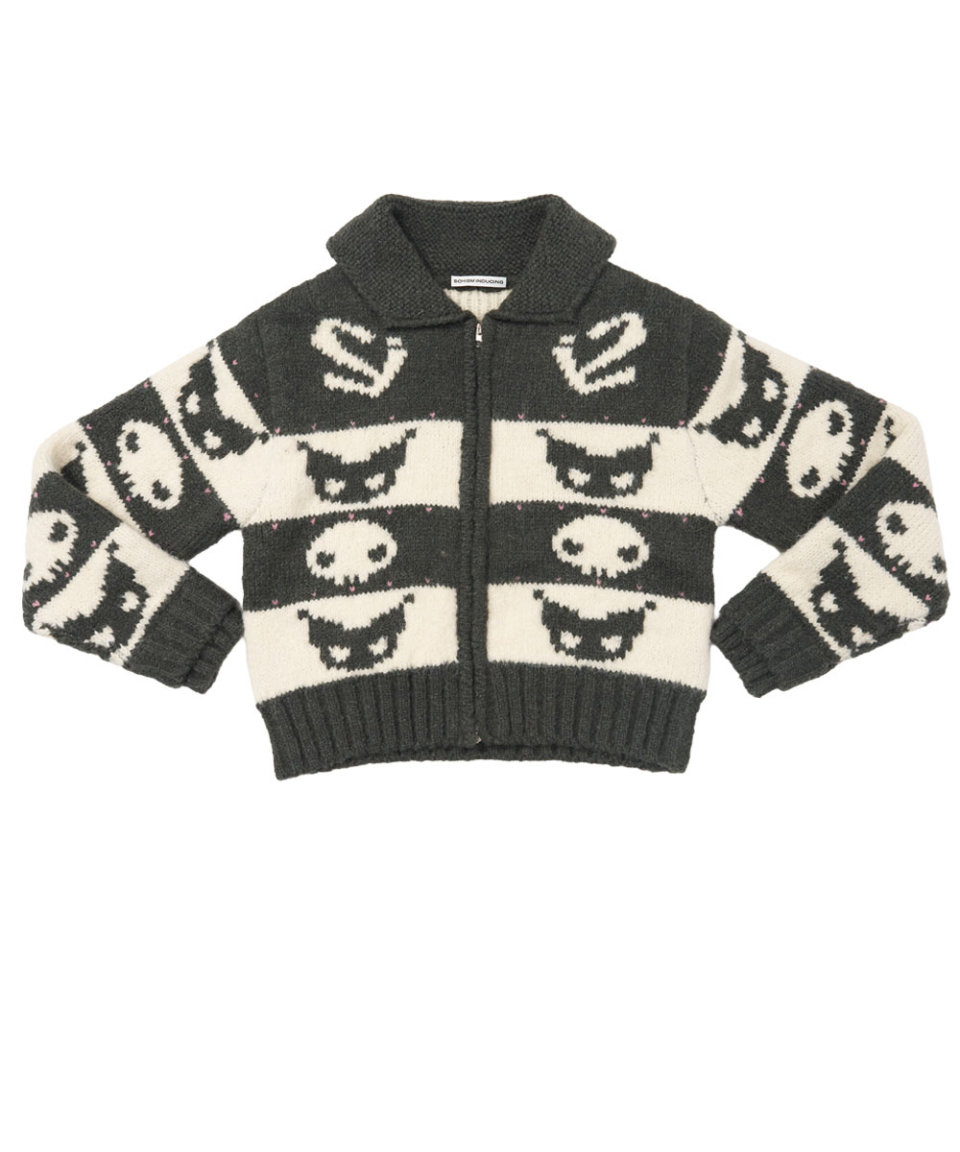 KUROMI COWICHAN ZIP CARDIGAN CHARCOAL