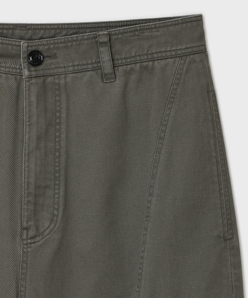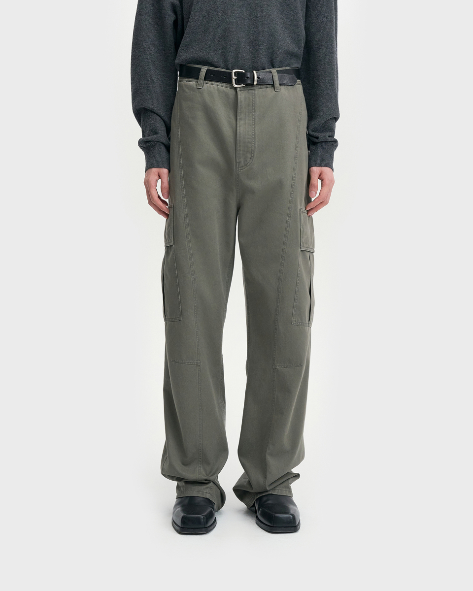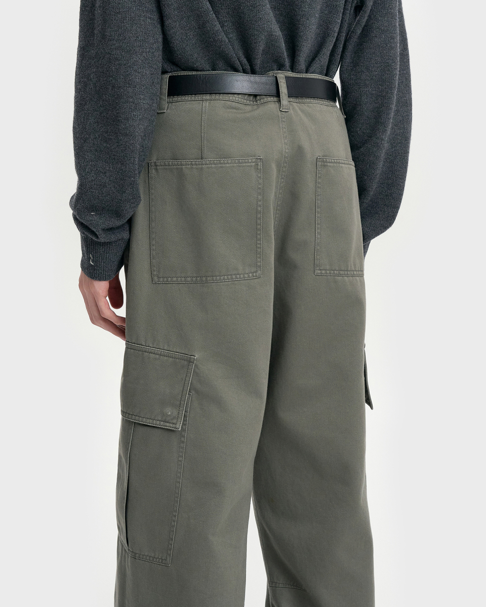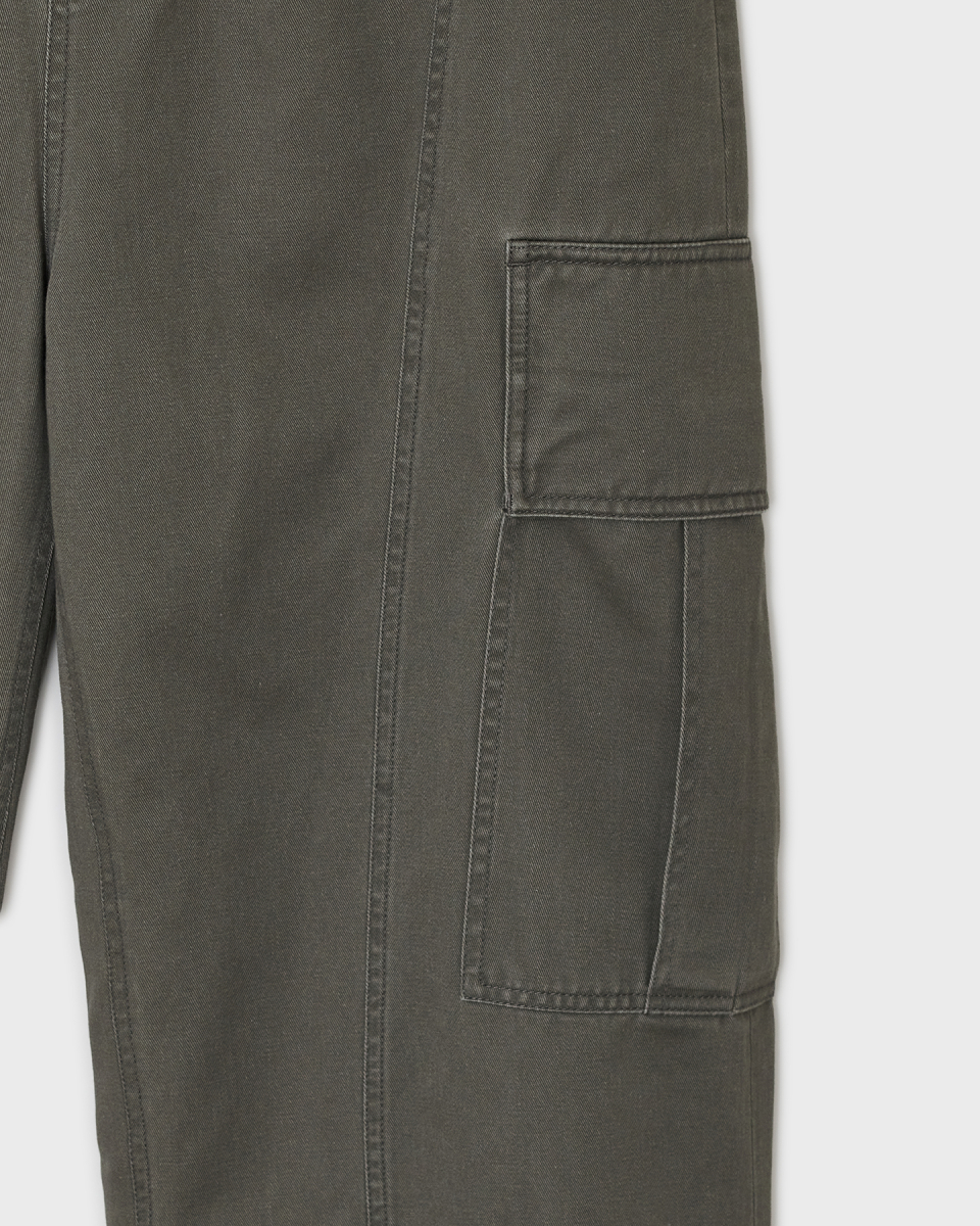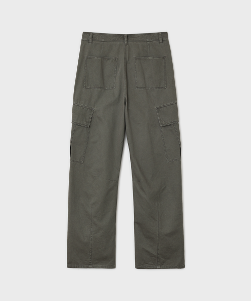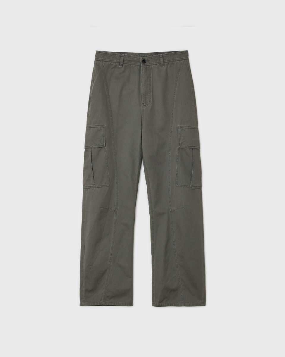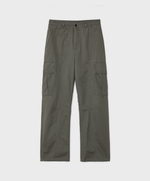 일본 VANCET社의 트윌 원단을 수입하여 제작된 허리선부터 밑단까지 유려하게 이어지는 와이드 커브드 핏의 카고 팬츠. 가먼츠 워싱으로 마무리해 어반 빈티지 무드를 가득 담은 팬츠.