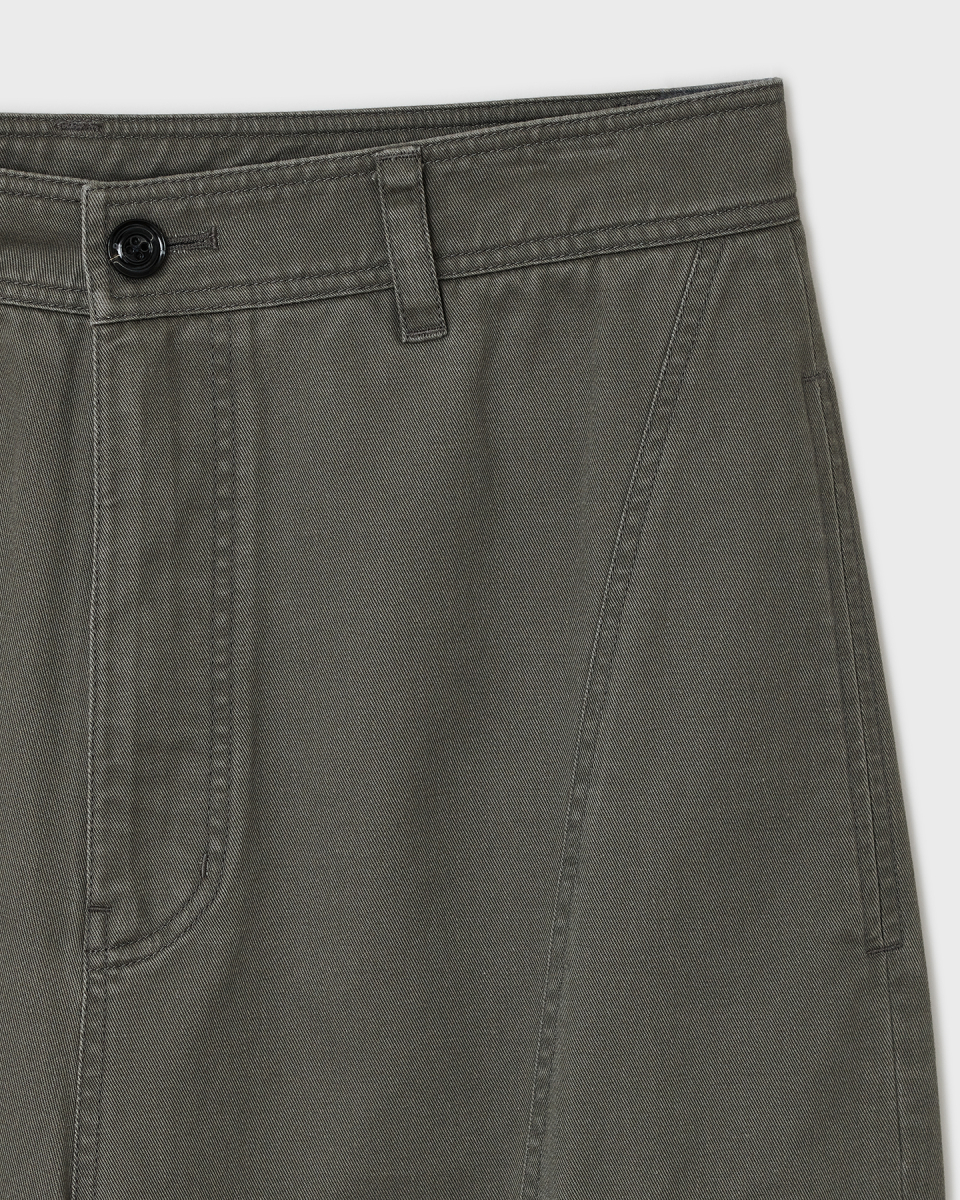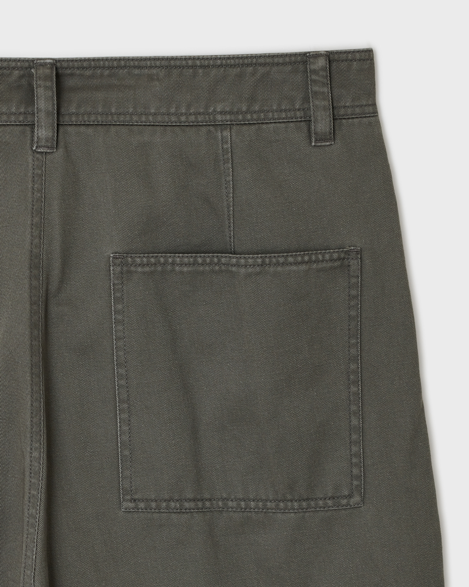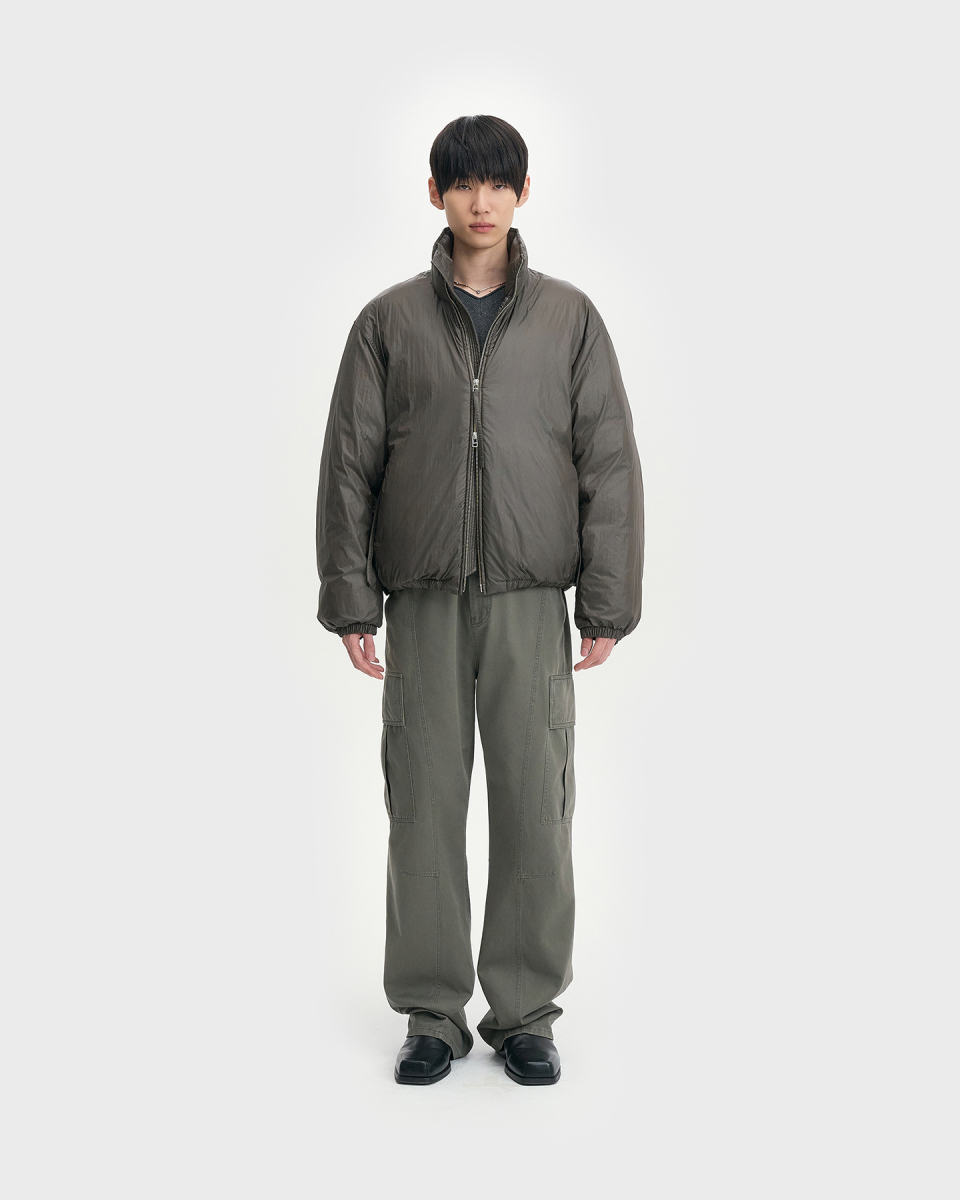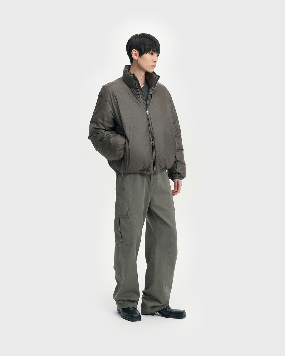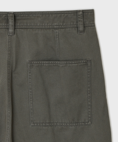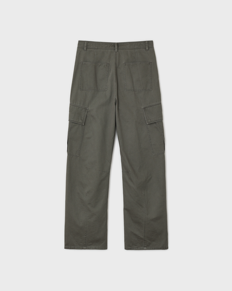 일본 VANCET社의 트윌 원단을 수입하여 제작된 허리선부터 밑단까지 유려하게 이어지는 와이드 커브드 핏의 카고 팬츠. 가먼츠 워싱으로 마무리해 어반 빈티지 무드를 가득 담은 팬츠.