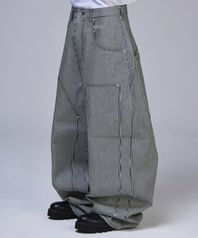더블니 배기 카펜터 생지 데님[스트라이프]