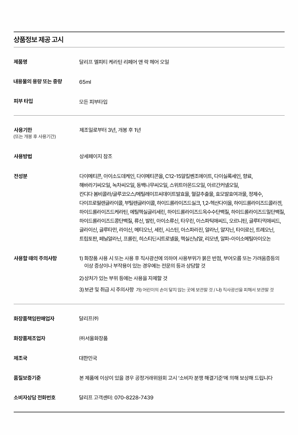 LPT 케라틴 리페어 락 앤 오일 65ml