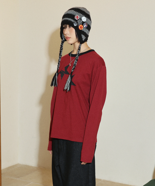 TWIN STAR RINGER LS TEE BURGUNDY(CV2FFUT577A)