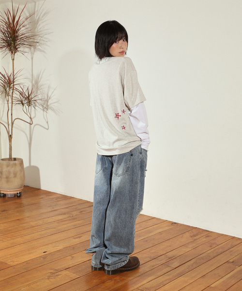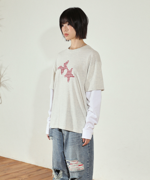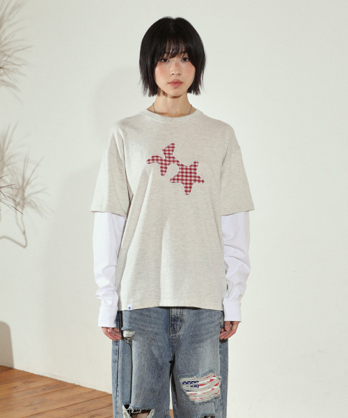 CHECK TWIN STAR LAYERED LS TEE OATMEAL(CV2FFUT578A)