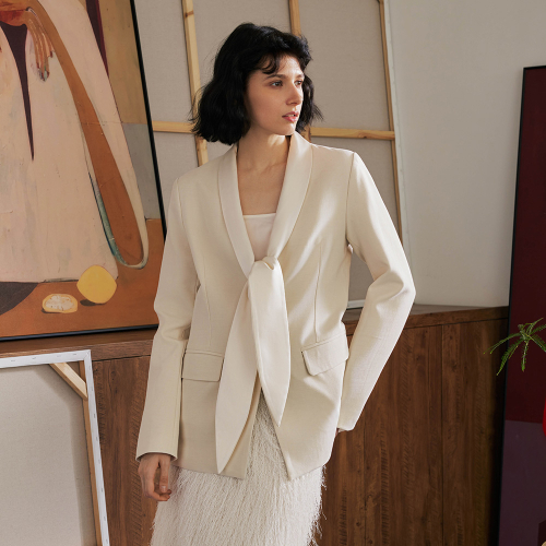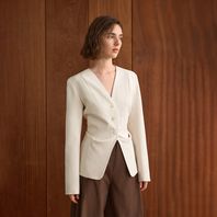 YY_V-neck commuter slim jacket_IVORY