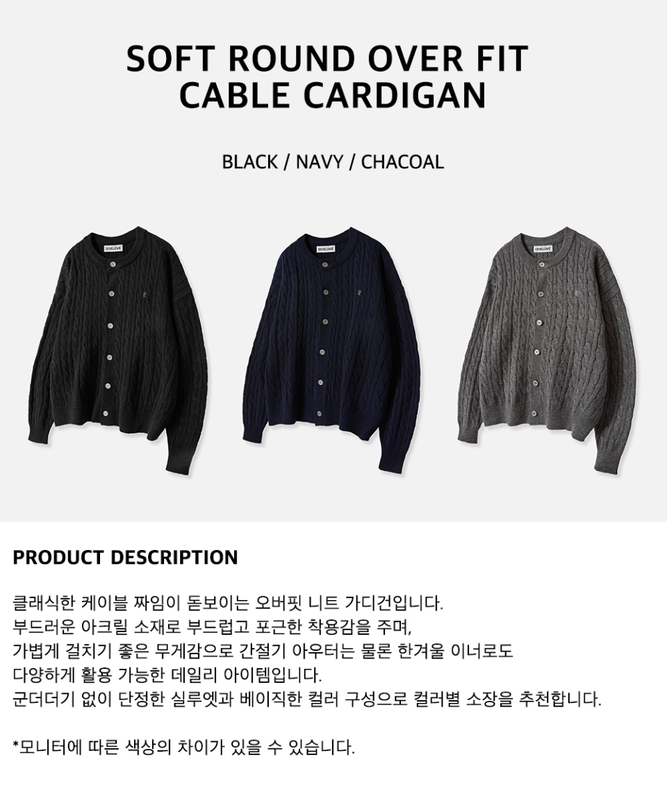 소프트 케이블 라운드 오버핏 가디건_네이비