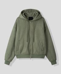 페이크 스웨이드 후드 집업 자켓 [올리브]