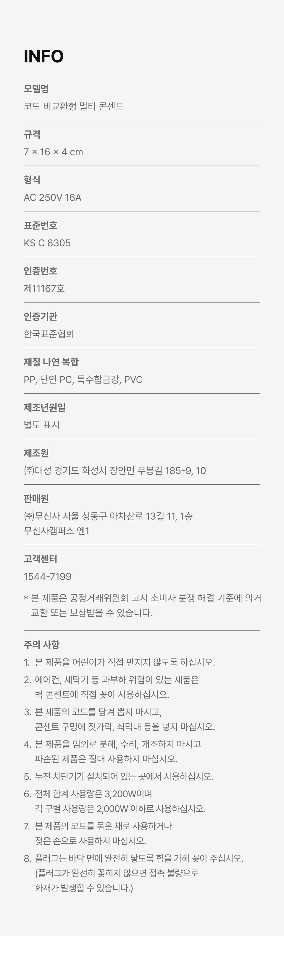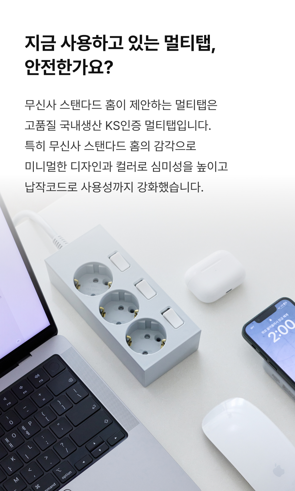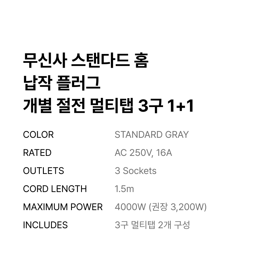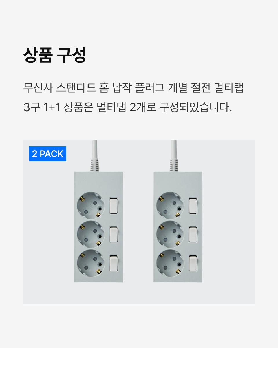 [2PACK] 납작 플러그 개별 절전 멀티탭 3구 1.5M