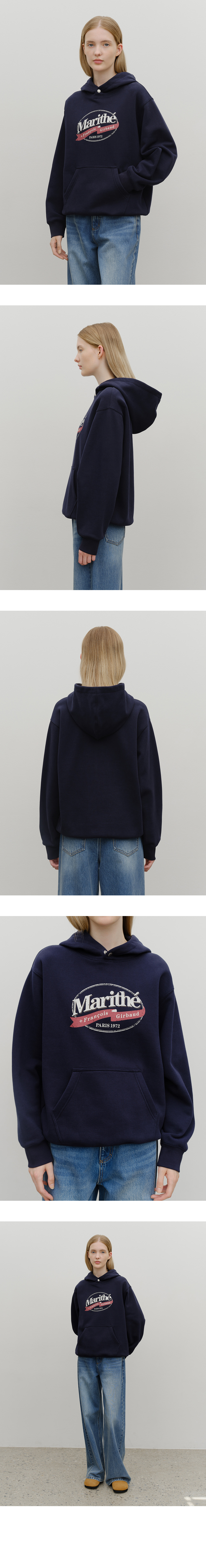 VINTAGE STAMP GRAPHIC HOODIE (BRUSHED) navy