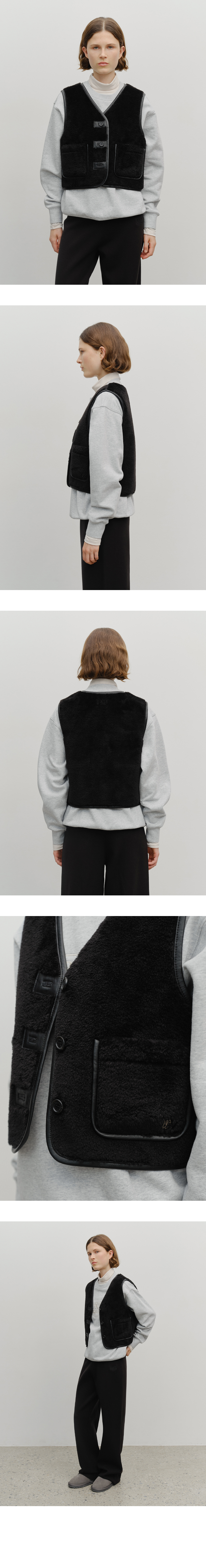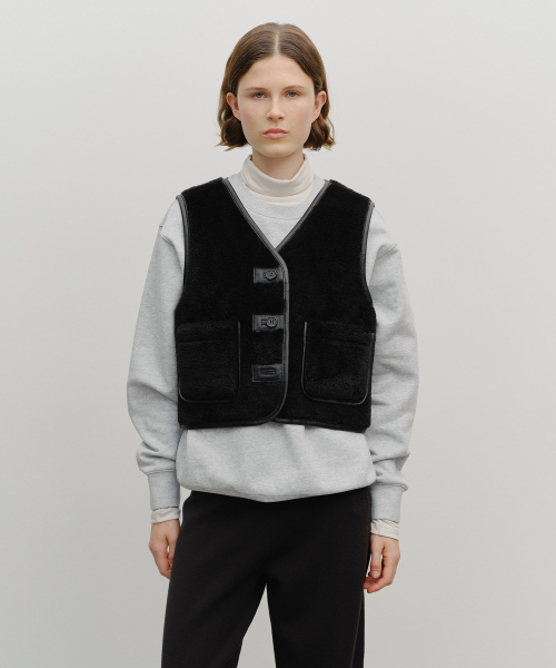 W FAUX LEATHER MUSTANG CROP VEST black