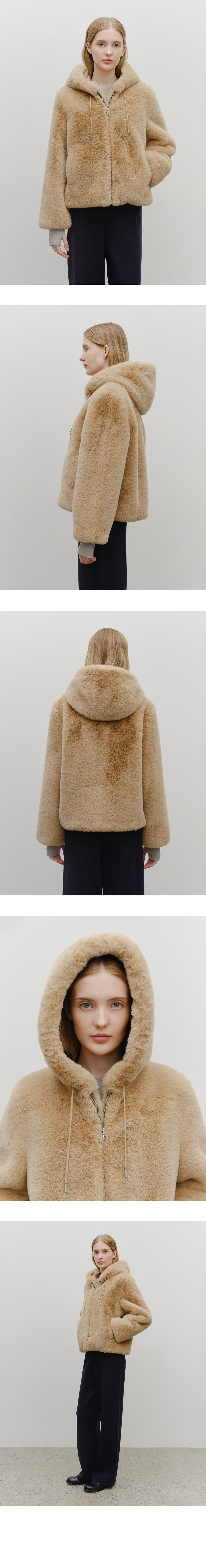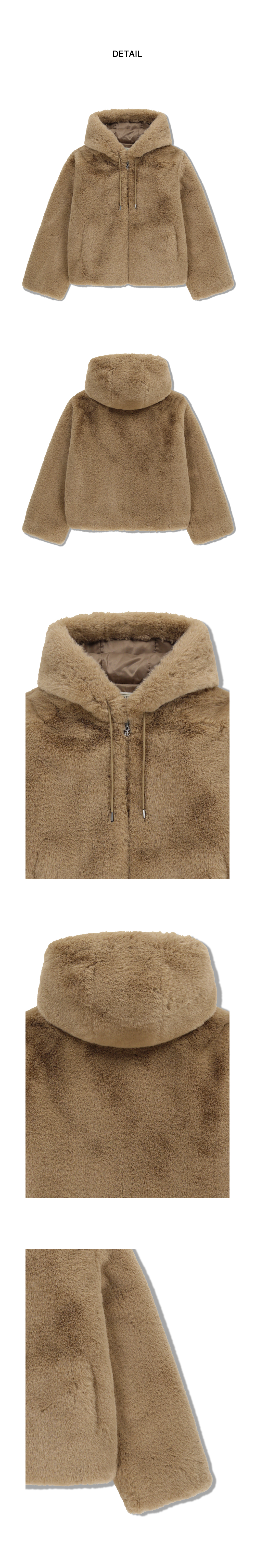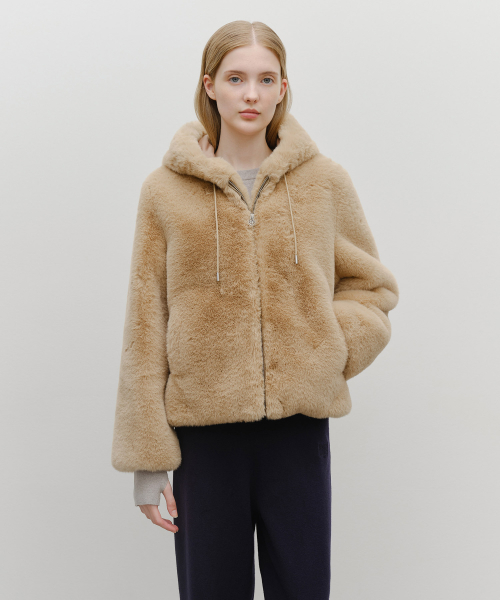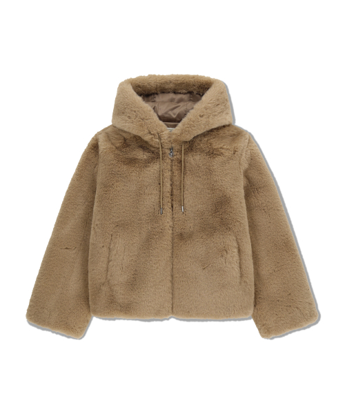 W HOODED FAUX FUR JACKET beige