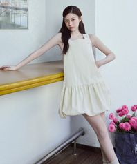 [고윤정착용] W BUBBLE HEM SLEEVELESS DRESS cream
