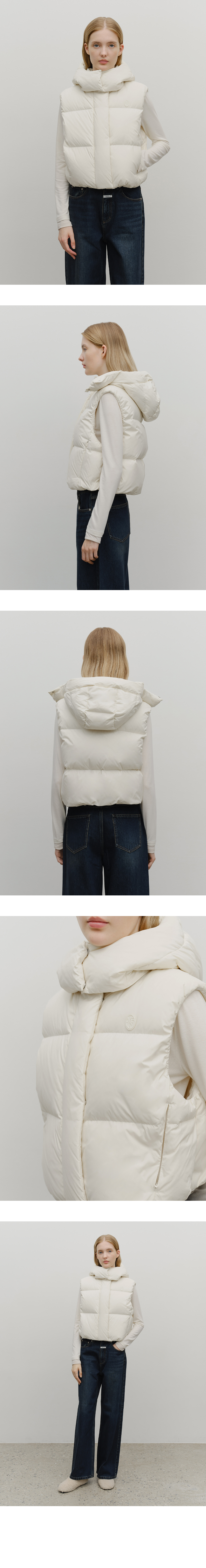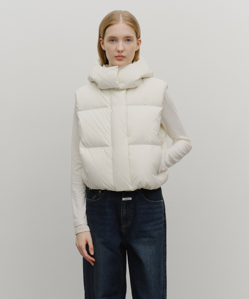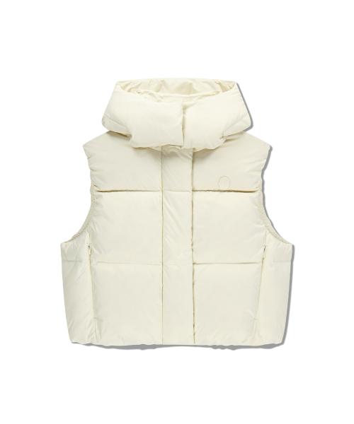 W CIRCLE LOGO CROP HOODED DOWN VEST ivory