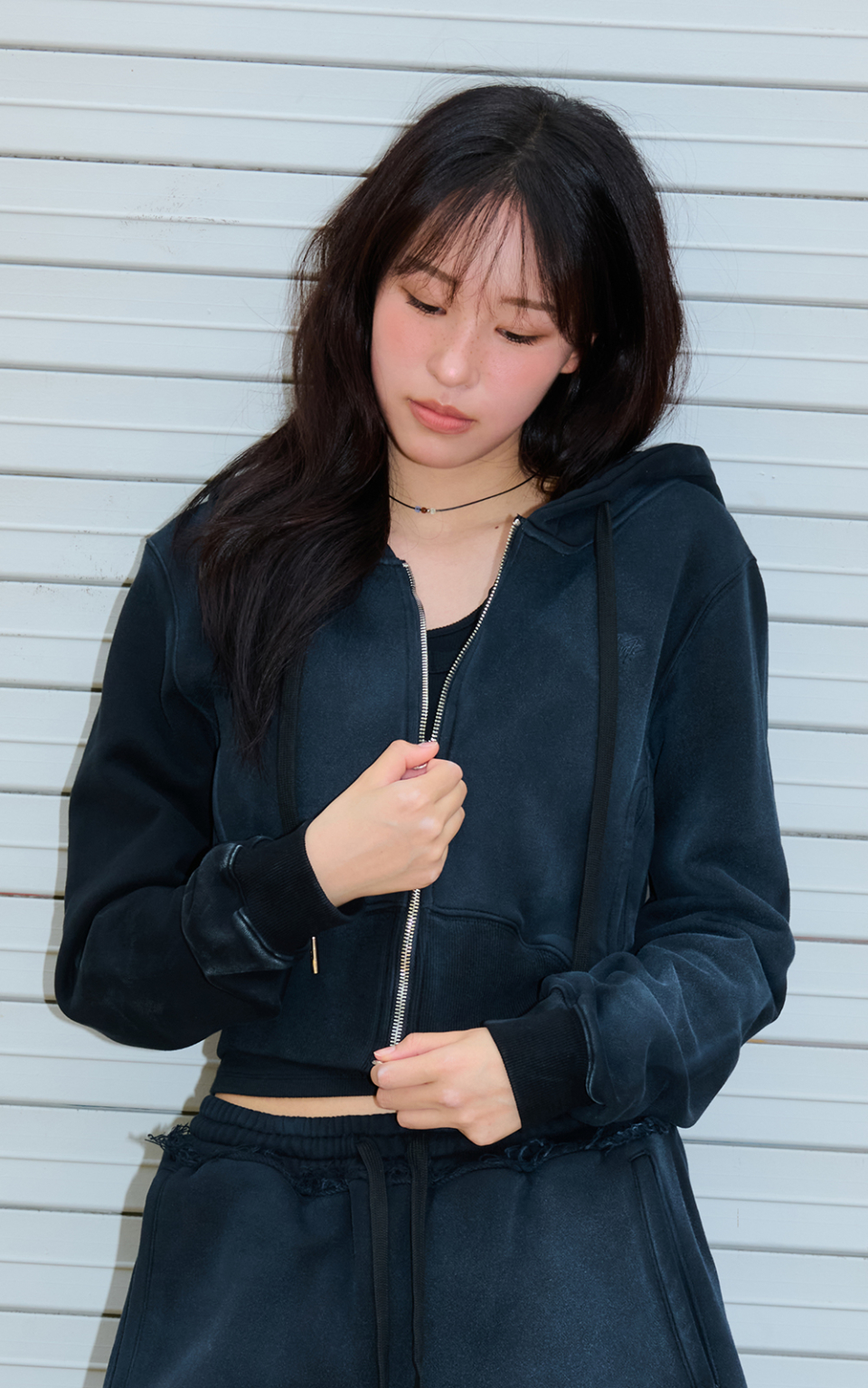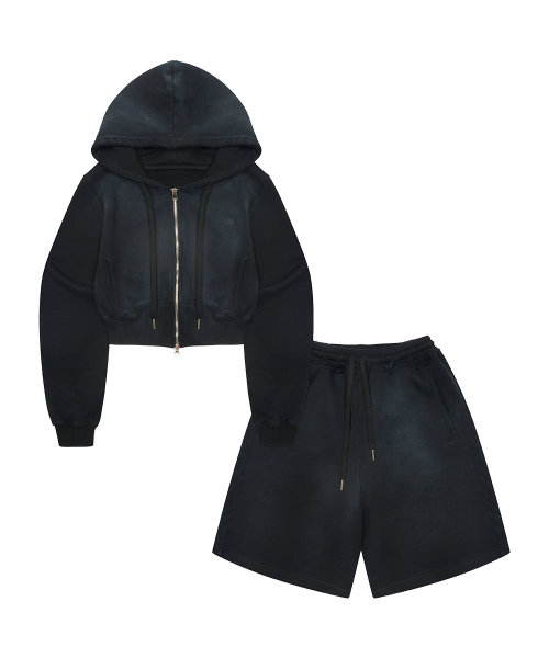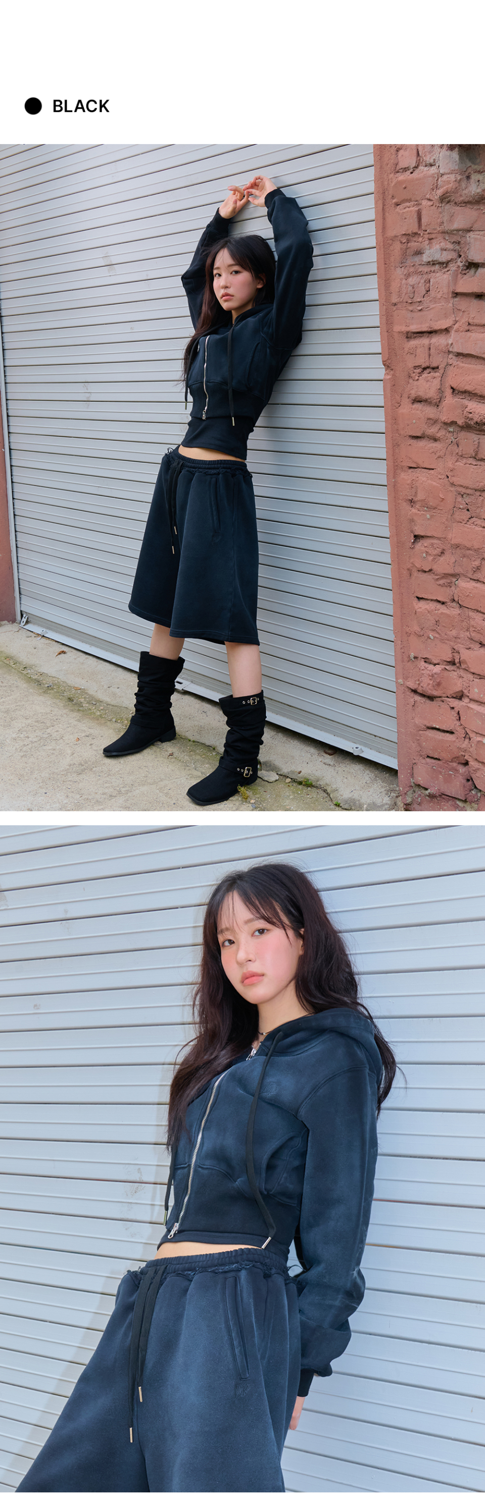 [SET] 워싱 크롭 후드 집업 셋업 (2color) ANZHD01HS ANZSPT02HS