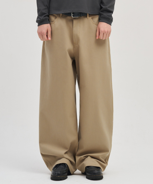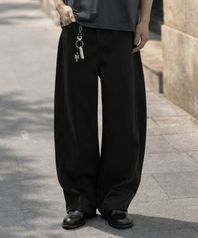 트위스트 볼륨 커브드 코튼 팬츠 블랙