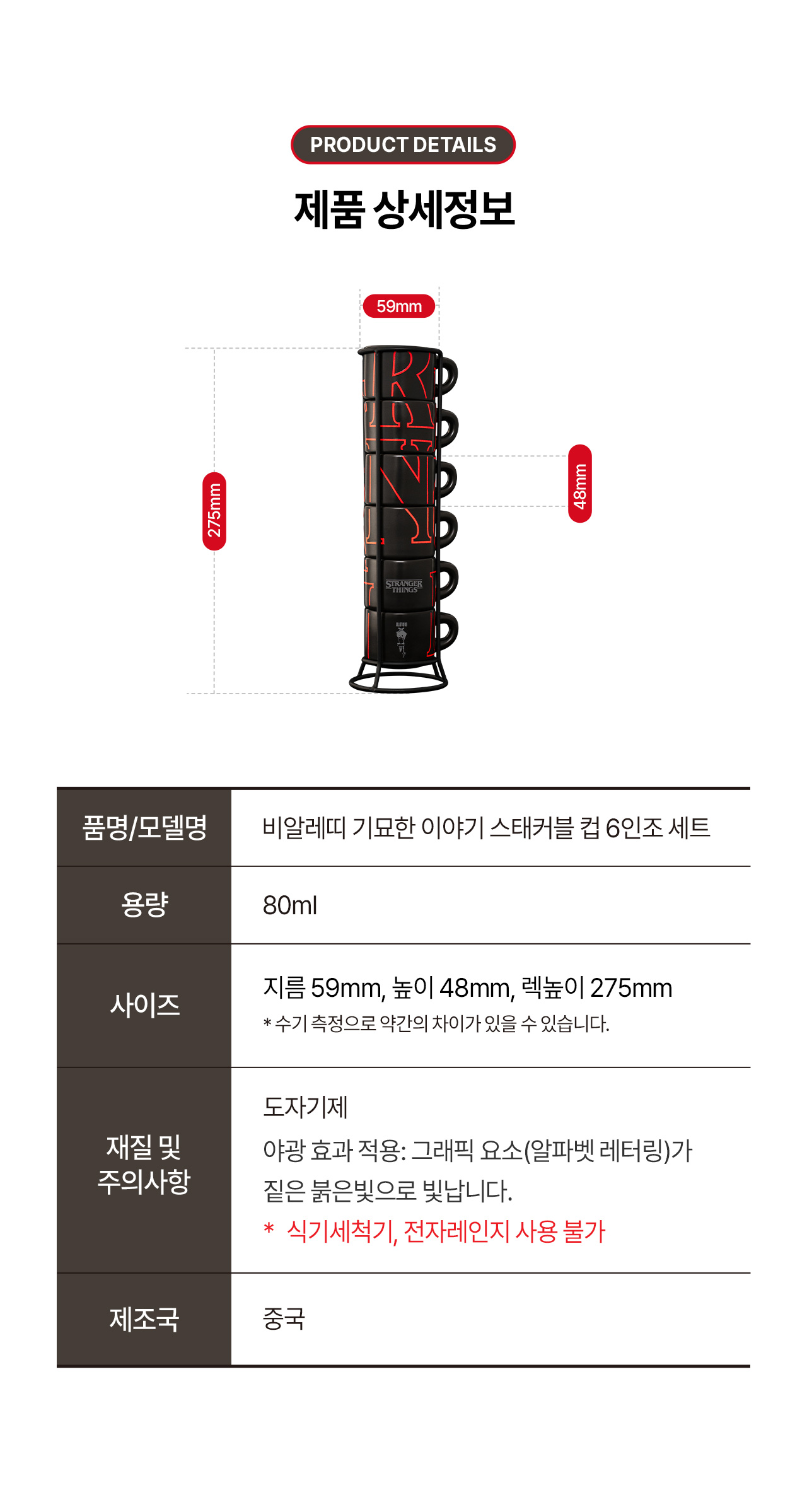 비알레띠 기묘한 이야기 스태커블 컵 6인조 세트