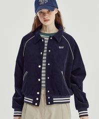 플로럴 퀼팅 코듀로이 바시티 자켓 [네이비]