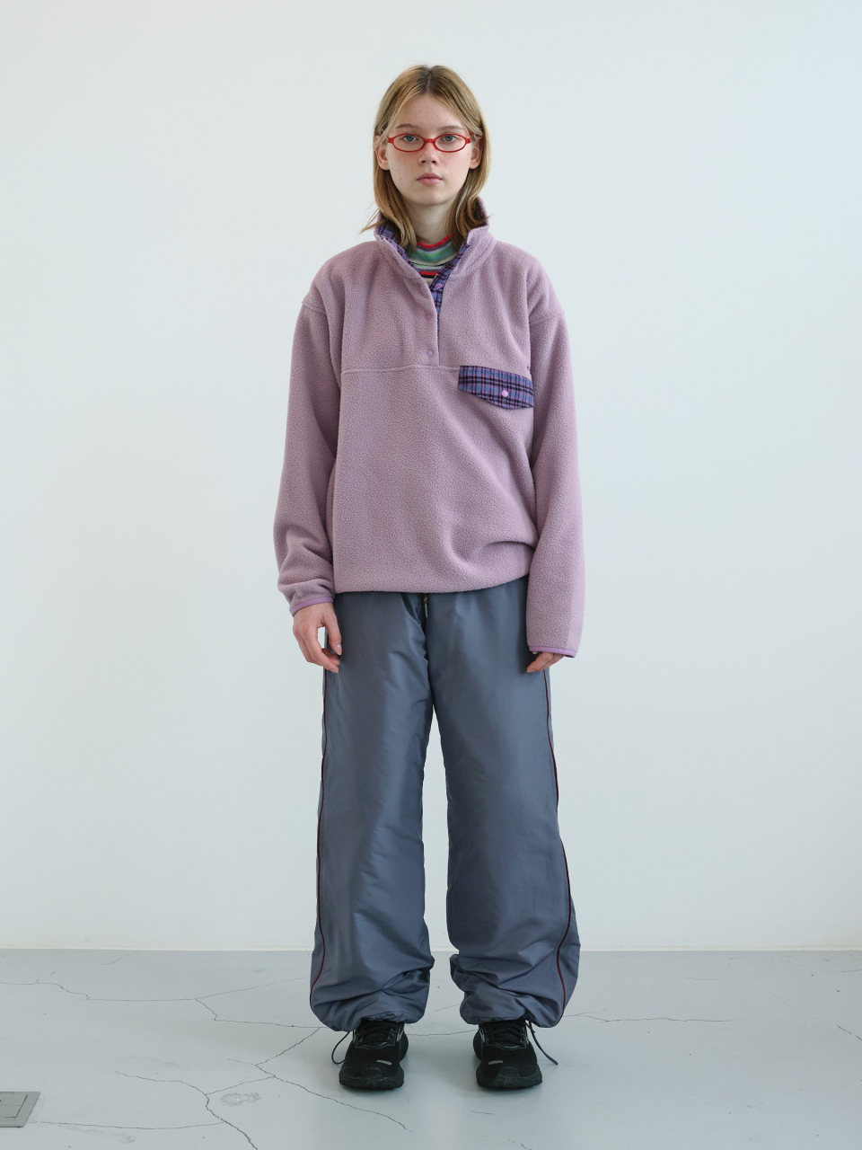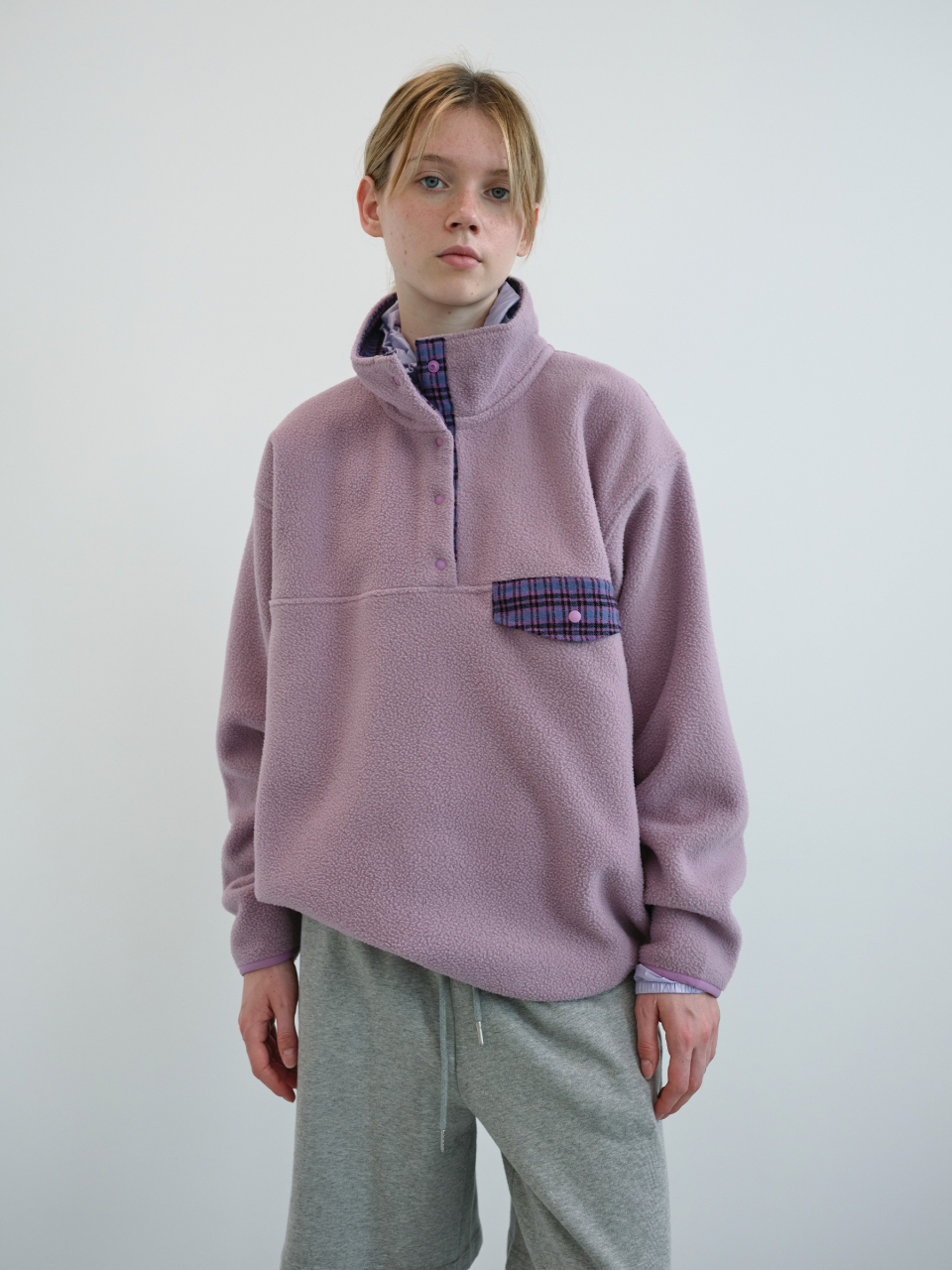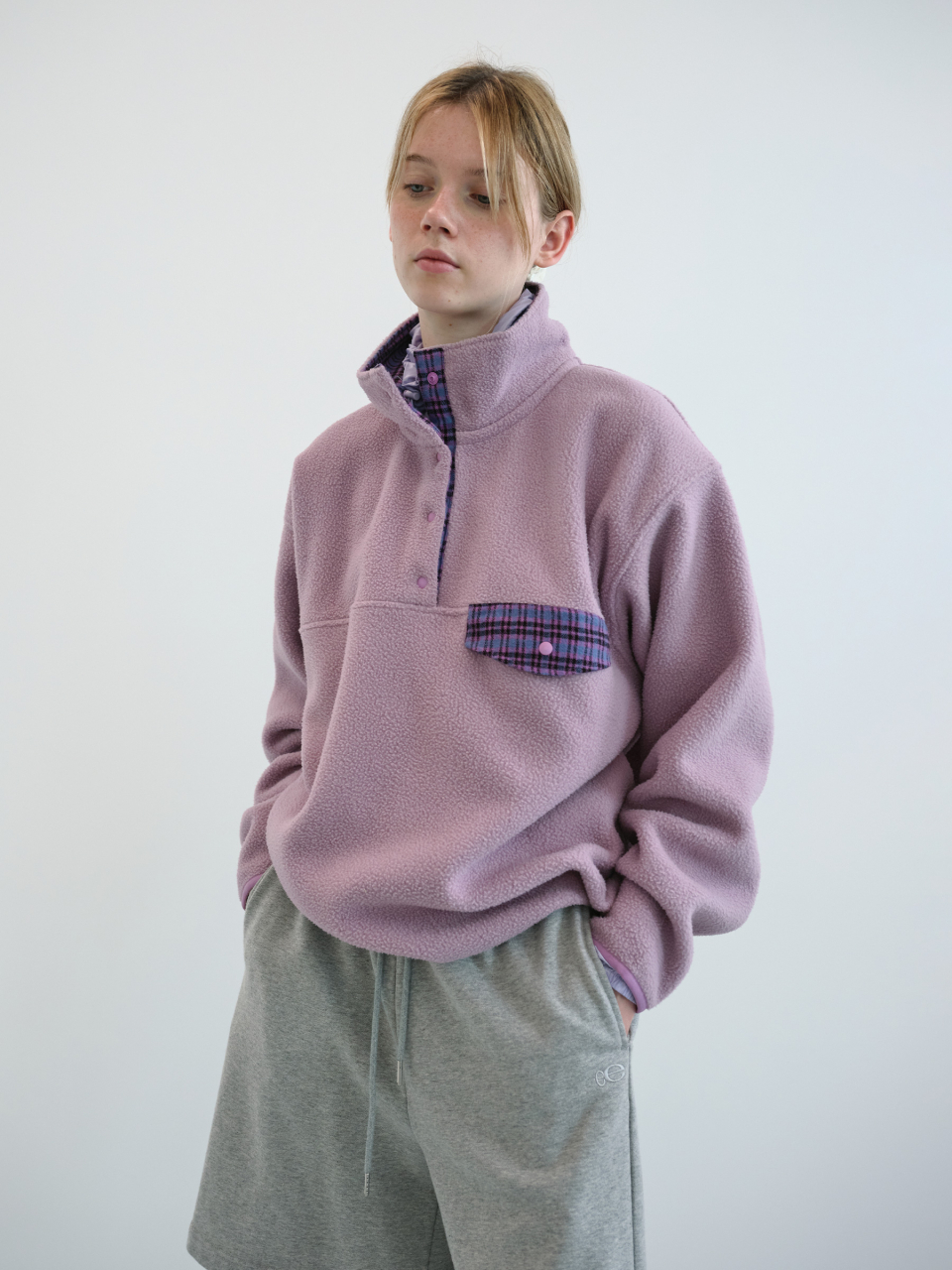 레트로 스냅 플리스 아노락 (Lavender)