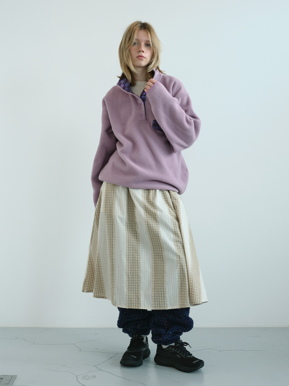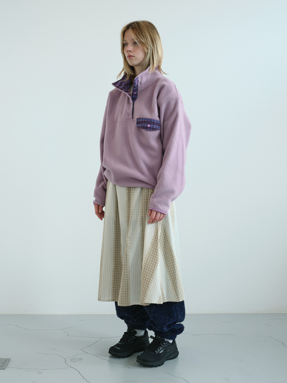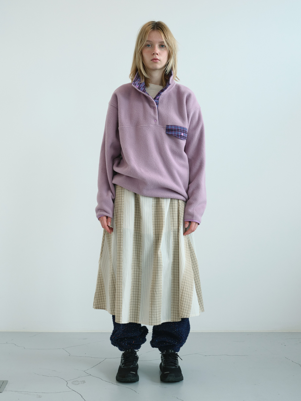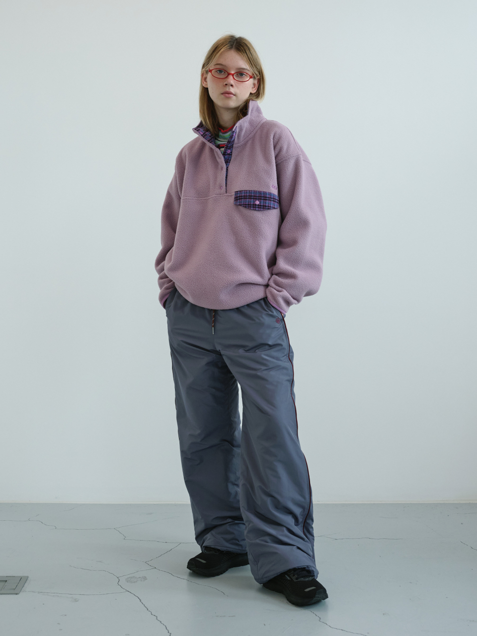 레트로 스냅 플리스 아노락 (Lavender)