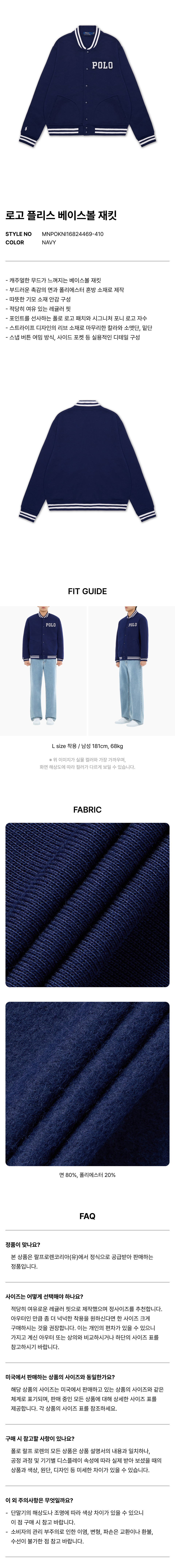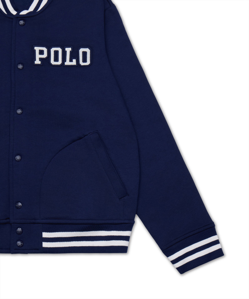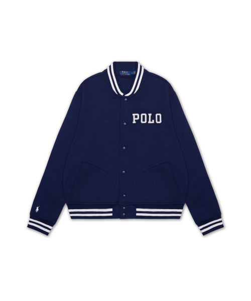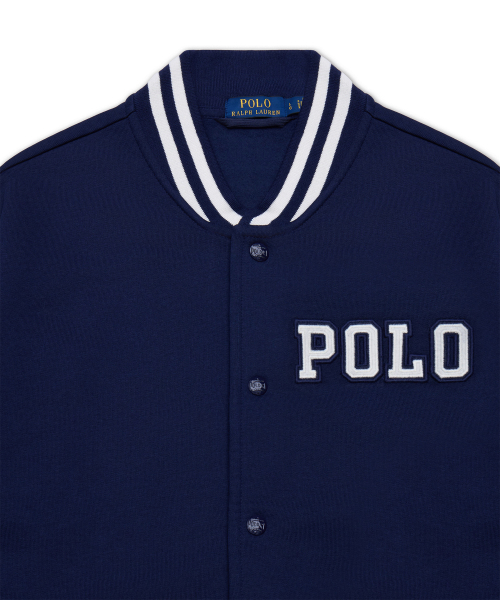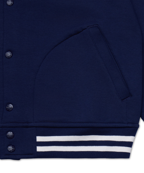 로고 플리스 베이스볼 재킷-네이비