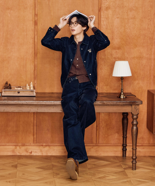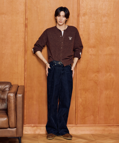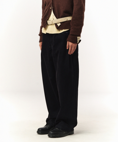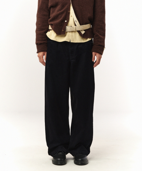 벨벳 와이드 커브드 데님 팬츠 인디고