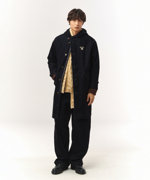 심볼 브로치 벨벳 칼라 데님 트러커 자켓 인디고