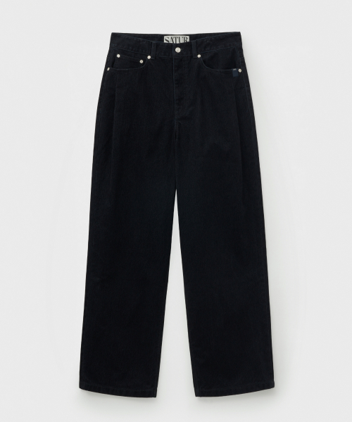 벨벳 와이드 커브드 데님 팬츠 블랙