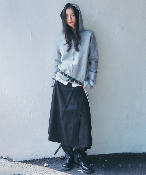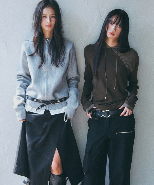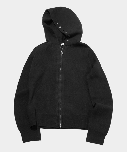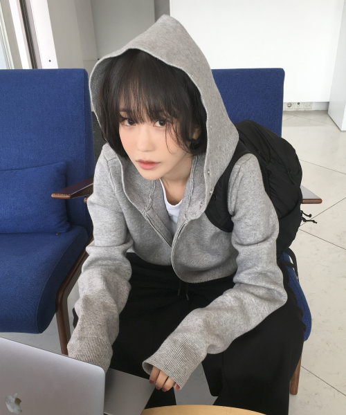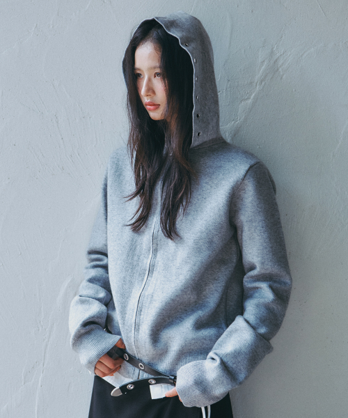 에센셜 소프트 리브드 베이직 워셔블 니트 아일렛 디테일 후드 집업 _ 2COLOR
