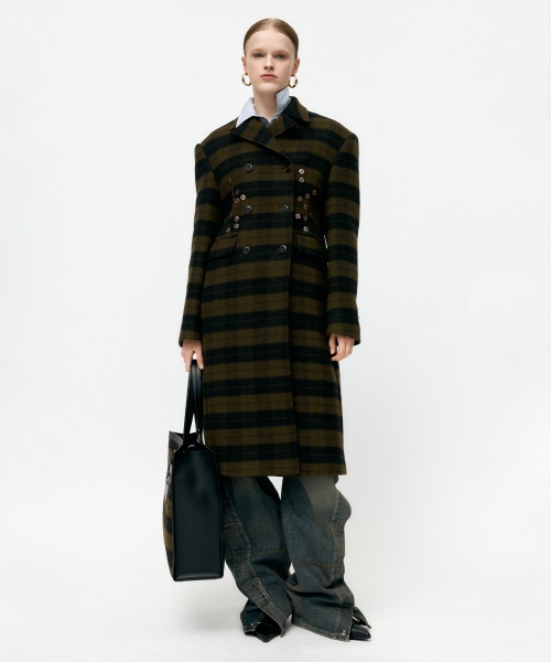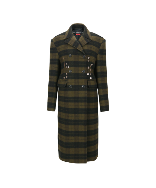 LACIE CHECK BUTTONS COAT awa726w(GREEN)