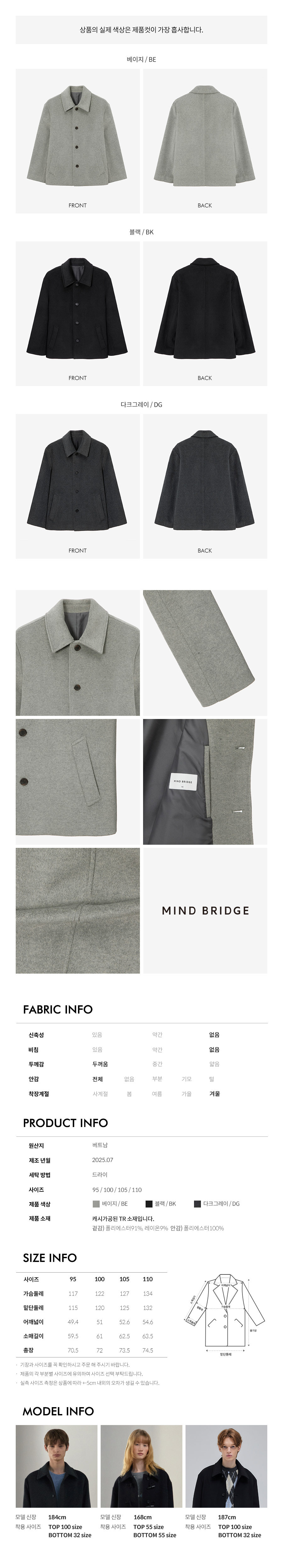 [ON]두굿_캐시미어 세미 오버핏 하프 코트 - 3color