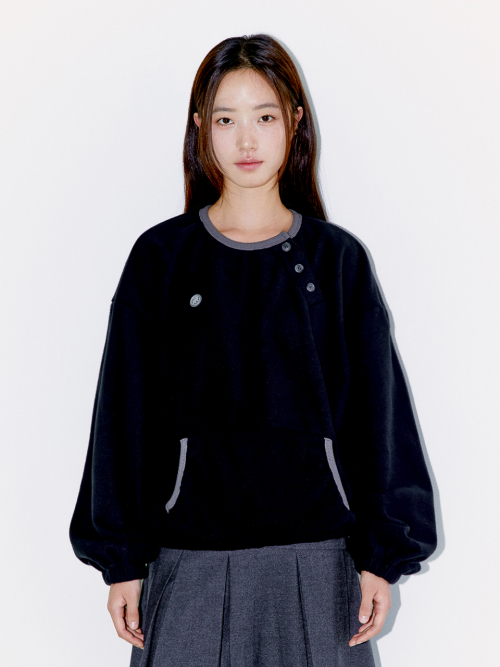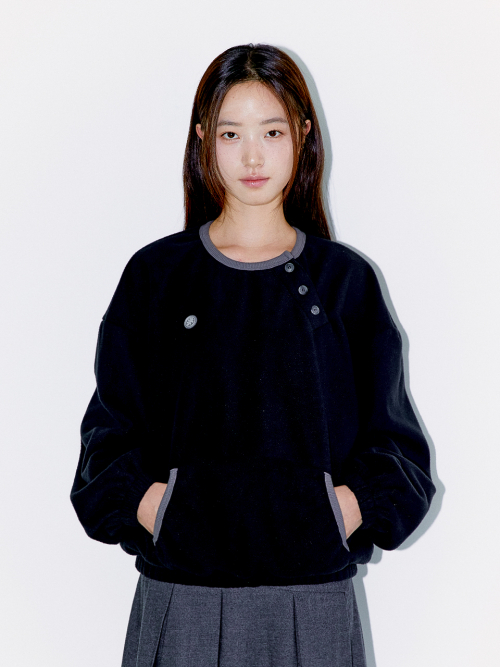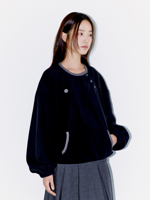 DIAGONAL HENLEY FLEECE SWEATSHIRTS, BLACK
