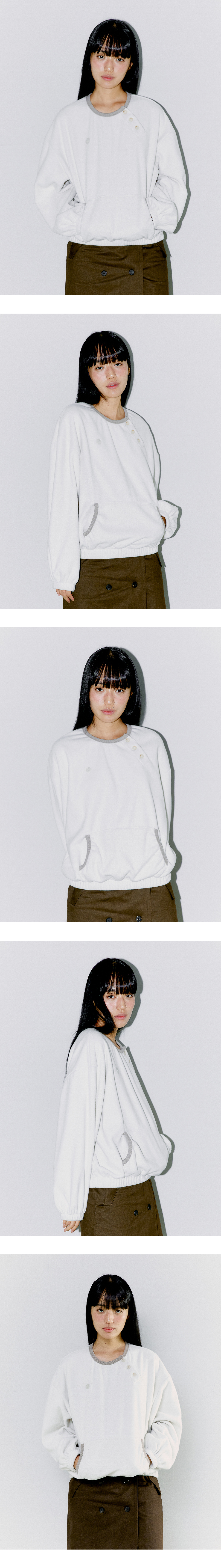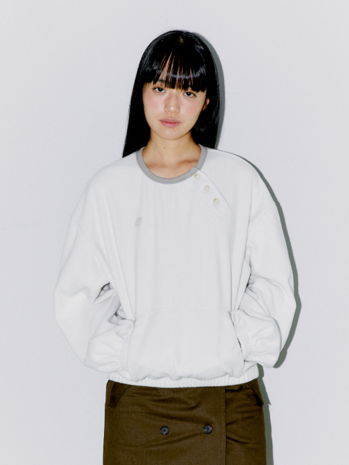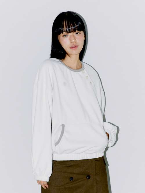DIAGONAL HENLEY FLEECE SWEATSHIRTS, IVORY
