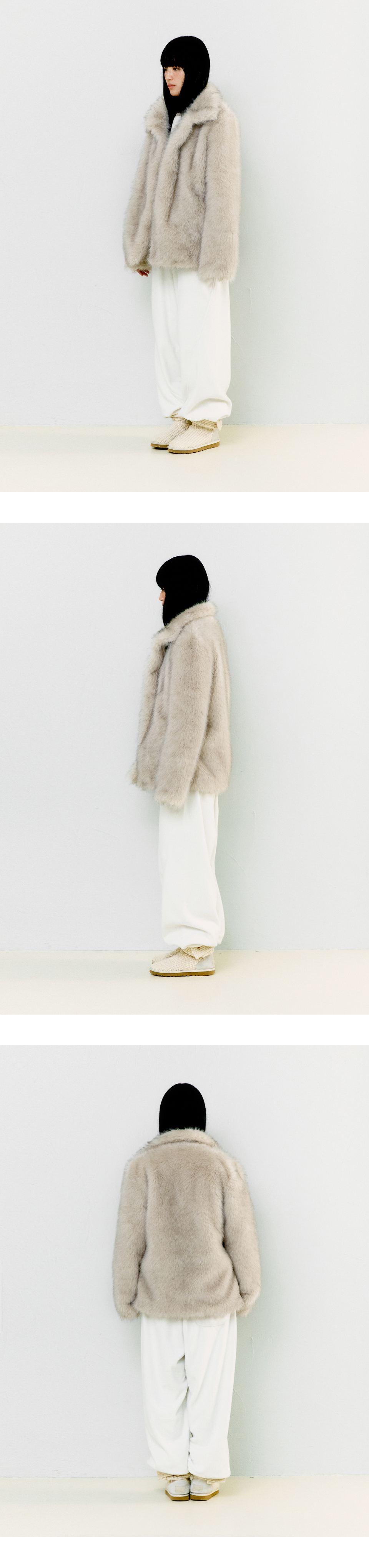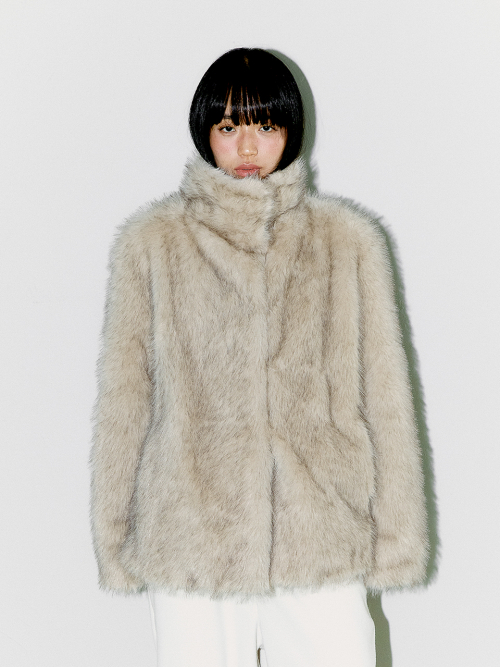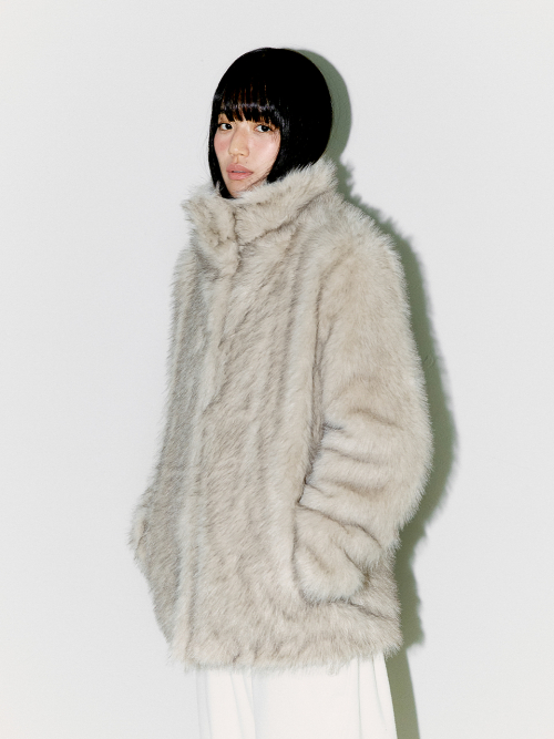 FLUFFY MIX FUR JACKET, LIGHT GRAY