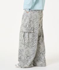 레오파드 와이드 카고 팬츠 그레이
