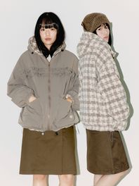 REVERSIBLE FRILL HOODED JACKET, BEIGE/CHECK