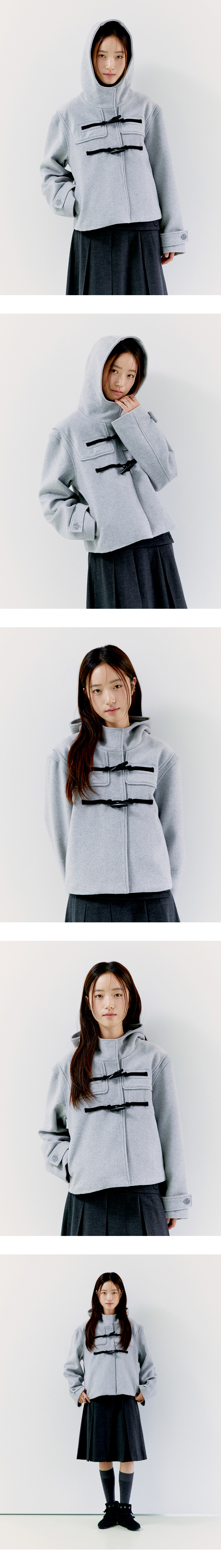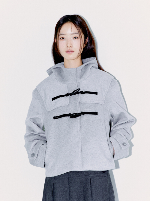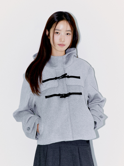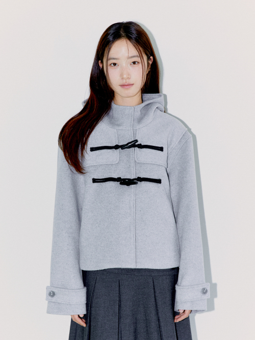 WOOL DUFFLE SHORT COAT, LIGHT GRAY