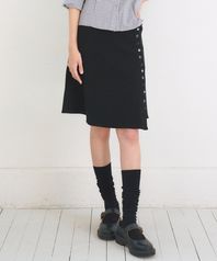 Asymmetric Ribbed Button Skirt, Black