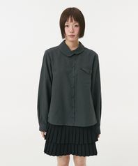 LAYERED COLLAR POCKET BLOUSE, CHARCOAL CHECK