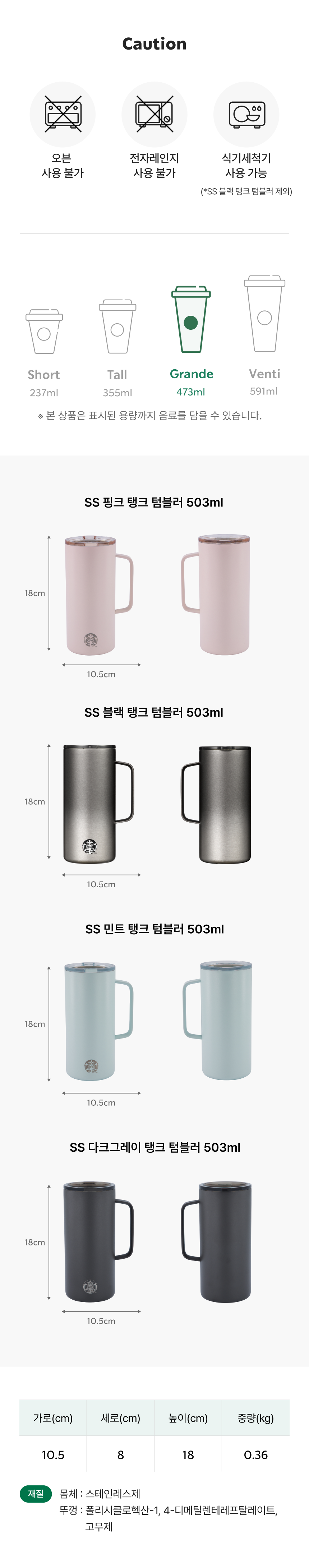 SS 탱크 텀블러 503ml 4종 +에코텀블러음료쿠폰(카톡발송)