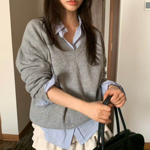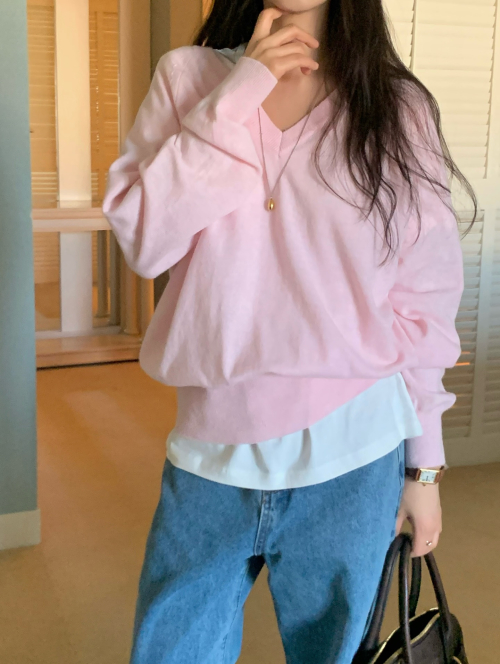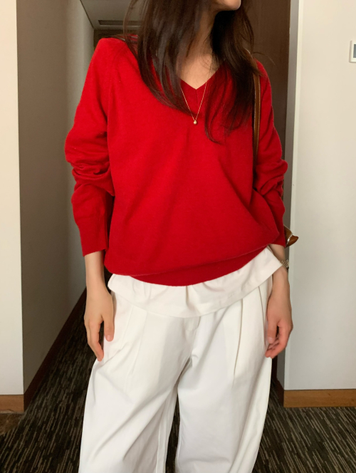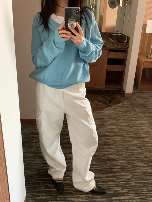 우먼즈 시그니처 엘리스 나그랑 브이넥 니트
