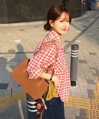 레터링 포켓 오버사이즈 체크 셔츠 레드