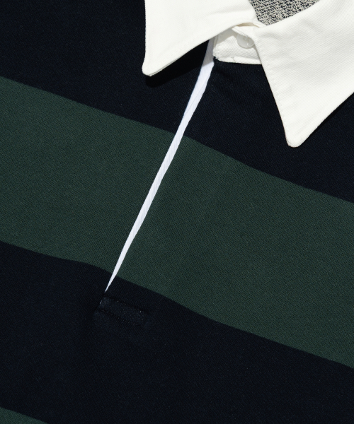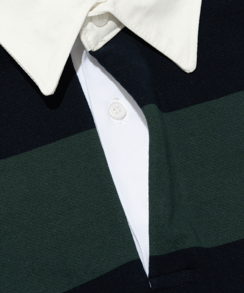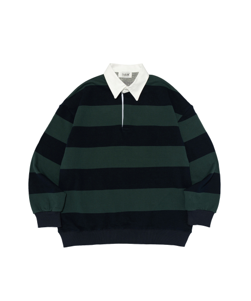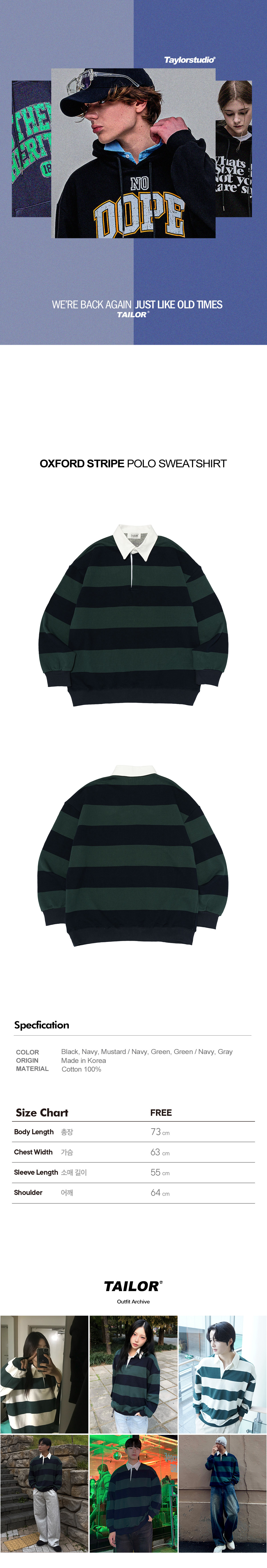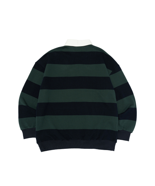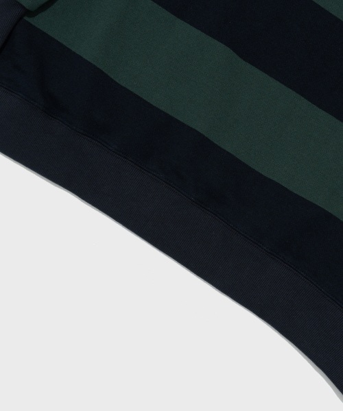 옥스퍼드 스트라이프 폴로 스웨트셔츠 (그린/네이비)