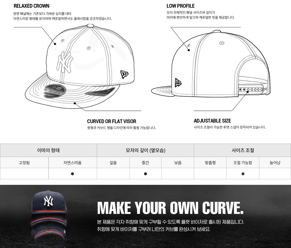NEW ERA(뉴에라)는 미국 버팔로에 본사를 두고 있는 모자 제조 업체이자 브랜드로 1920년 에르하르트 콕(Ehrhardt Koch)에 의해 설립되었으며 현재 북미 3대 스포츠 리그(MLB, NBA, NFL)의 공식 선수용 모자를 공급하고 있습니다. 이외에도 약 200여 개가 넘는 미국 대학 스포츠 팀 및 다양한 해외 스포츠 리그에도 선수용 캡을 공급하고 있습니다. 뉴에라는 모자와 스트리트 감성 넘치는 성인 어페럴, 백팩등의 액세서리 라인을 보유한 글로벌 브랜드입니다.