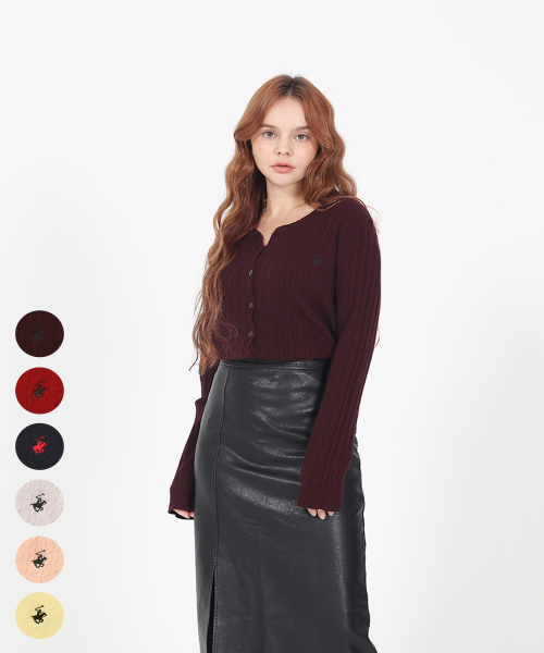 여성 로고버튼 케이블 니트 가디건 6Color TK030