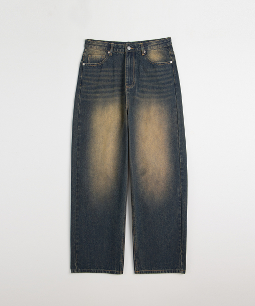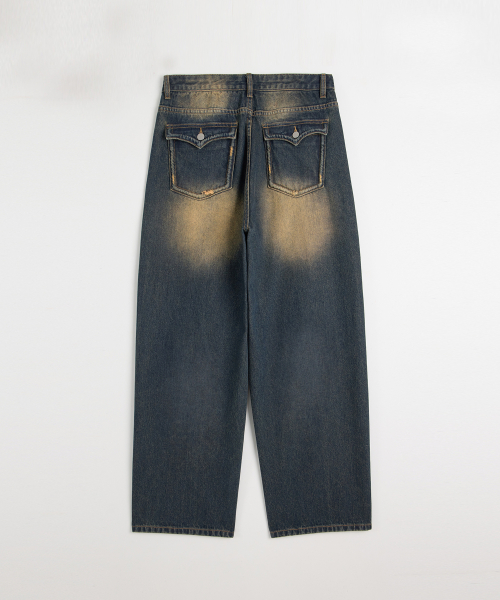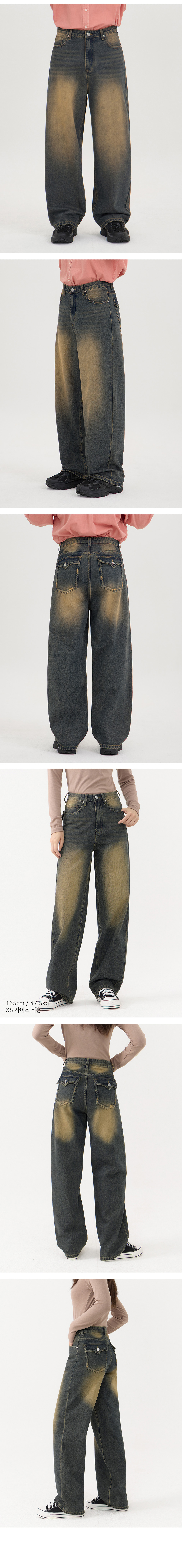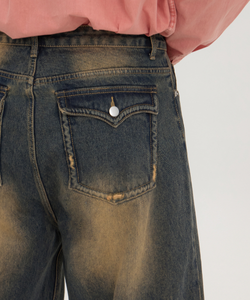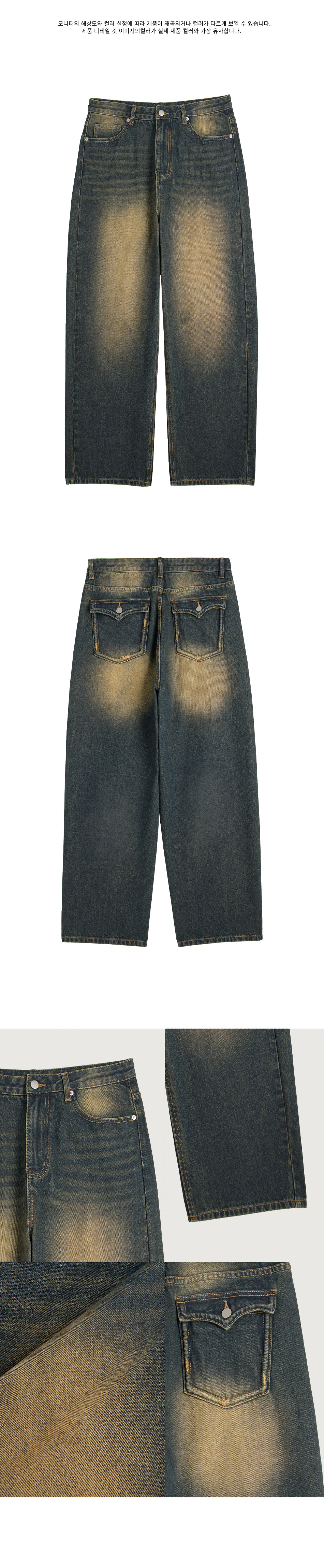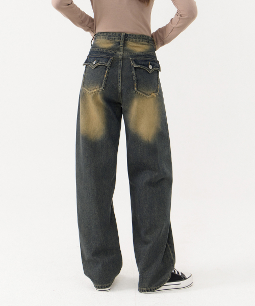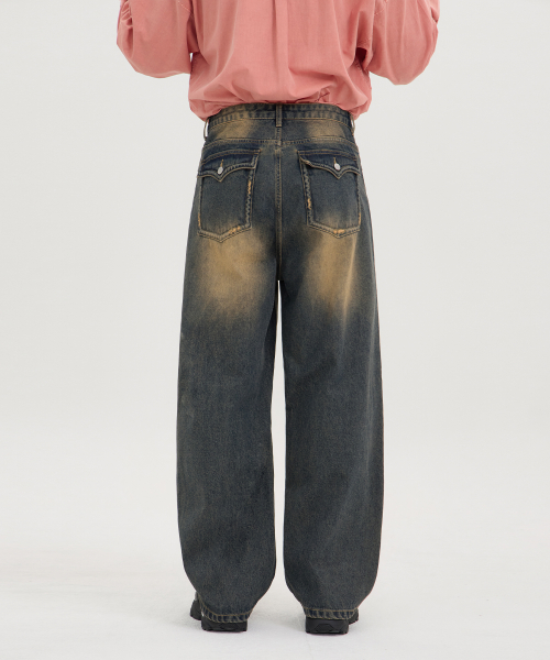 입체 곡선 백플랩 포켓 벌룬핏 와이드 데님 팬츠 유니섹스 (옐로우틴)
