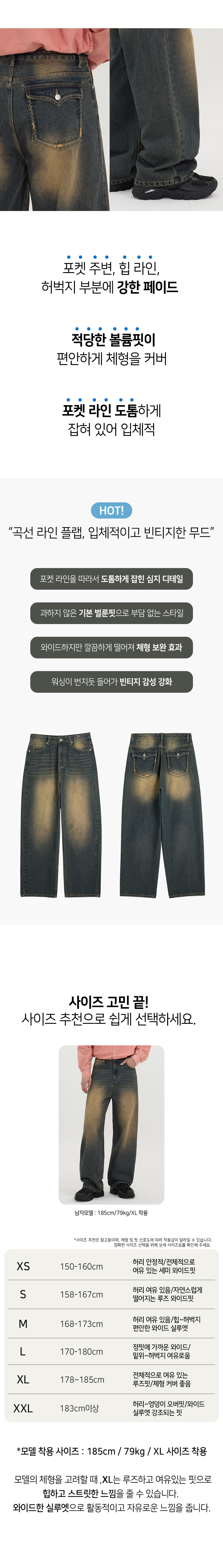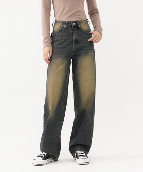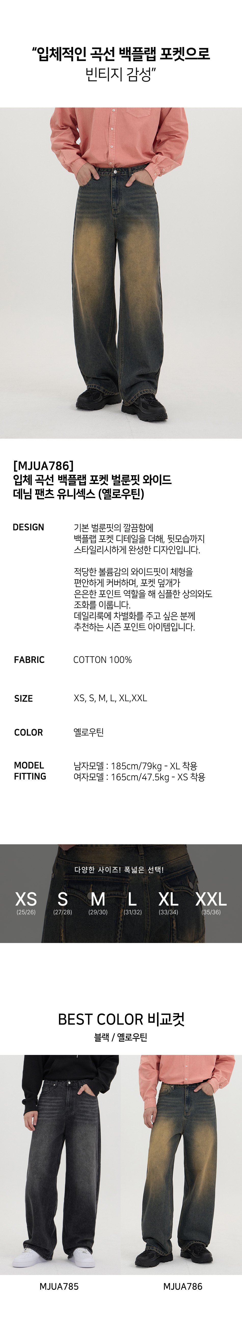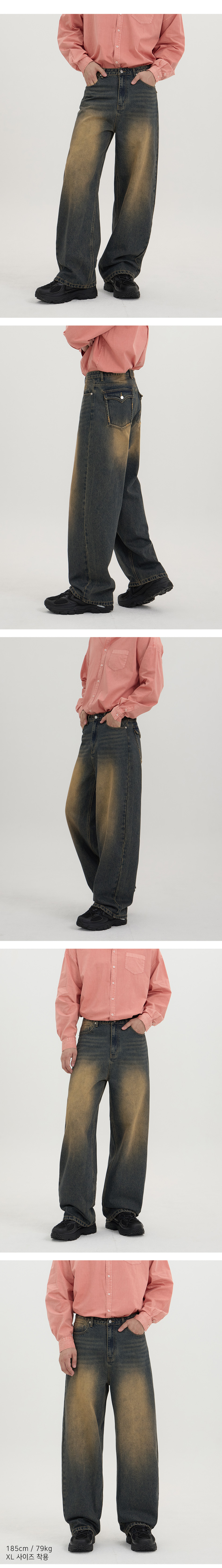 입체 곡선 백플랩 포켓 벌룬핏 와이드 데님 팬츠 유니섹스 (옐로우틴)